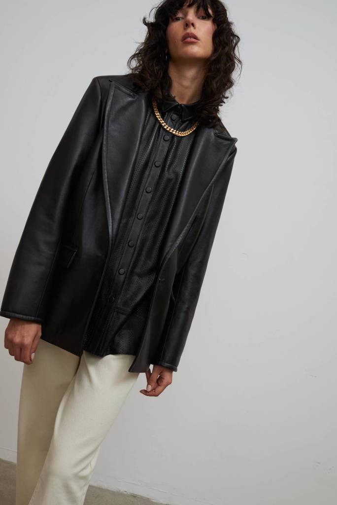 Skórzane kurtki, szare garnitury, sukienki z krzyżującymi się na plecach ramiączkami i sandały z cienkimi paseczkami to zdecydowany ukłon w stronę lat 90., dekady słynącej z minimalizmu. Surowa czerń, biel i szarość doskonale podkreślają prostotę i perfekcyjne wykonanie każdego elementu.