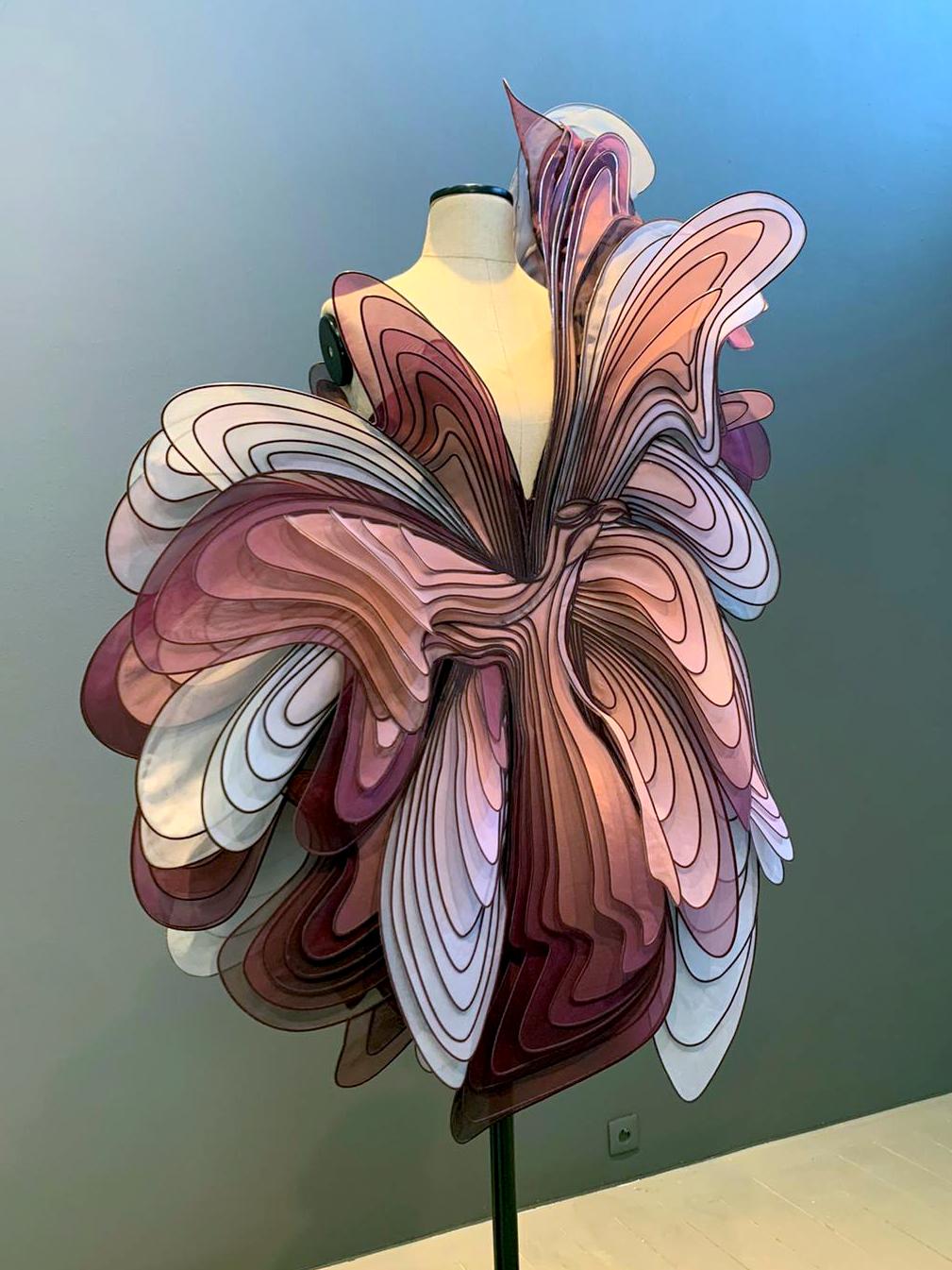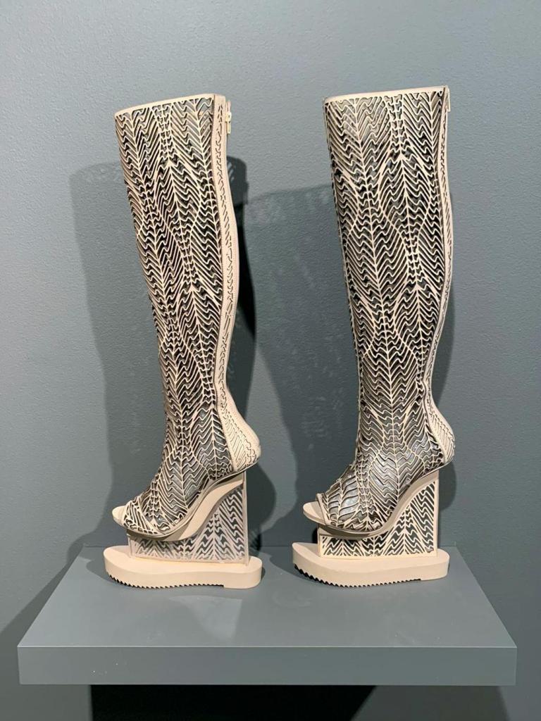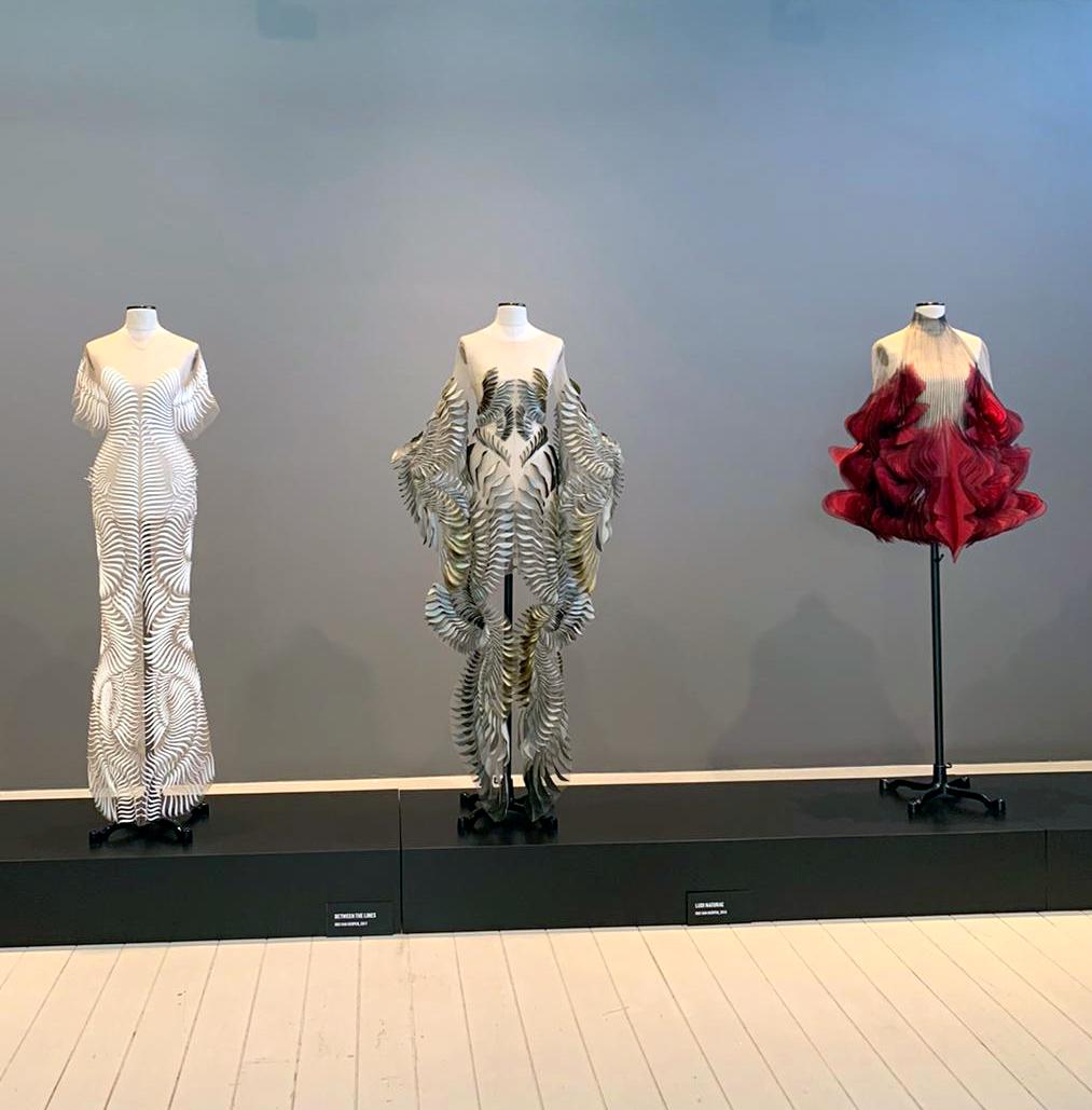 Wyselekcjonowane przez Wojciecha Piotra Onaka projekty przedstawiają różne okresy pracy twórczej Iris Van Herpen: od mrocznej kolekcji „Mummification” z 2009 roku, przez awangardową „Voltage” z 2013 aż po najnowsze, surrealistyczne „Hypnosis” i „Shift Souls”. Oprócz kreacji widzianych na wybiegu w Paryżu, na wystawie nie zabrakło równie awangardowych butów. Modele o futurystycznych kształtach zrealizowane we współpracy z marką United Nude czy japońskim projektantem Noritaka Tatehana stanowiły doskonałe uzupełnienie ekspozycji.