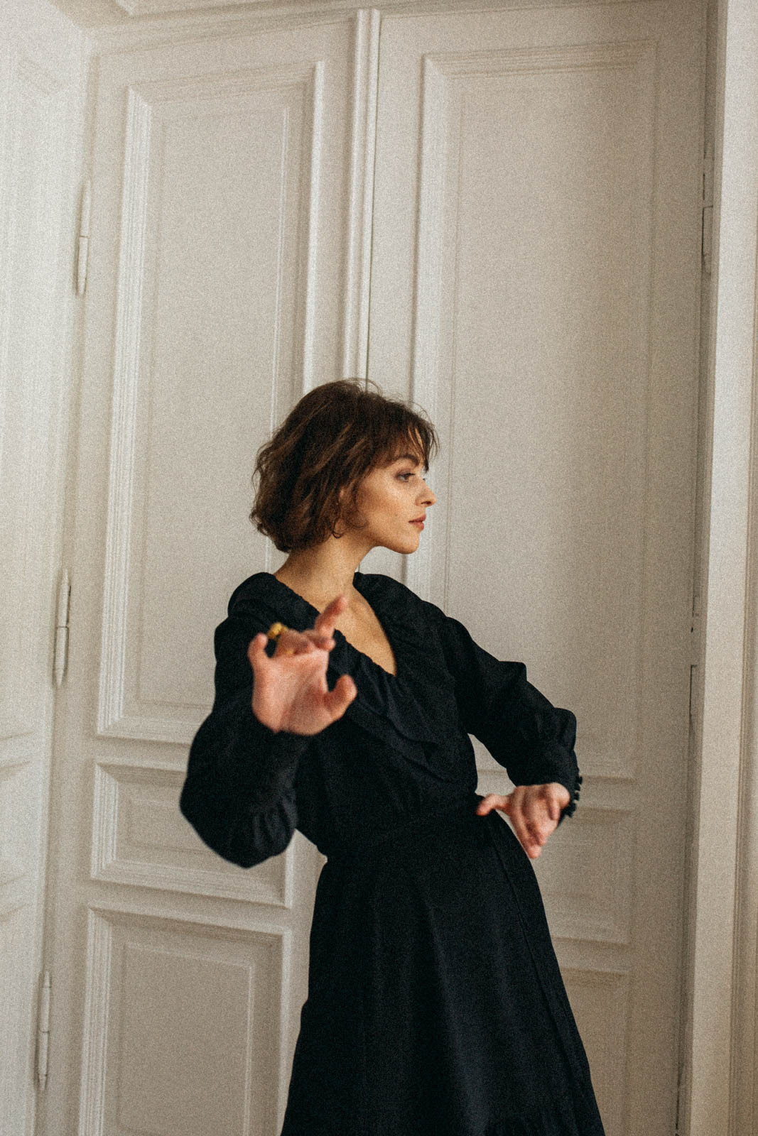 Pierwsza kolekcja to zaledwie dwie sukienki i jedna bluzka w zachowawczej czerni i bieli. Sophia to sukienka o prostym kroju, z kopertowym dekoltem i nienachalnym drobnym deseniem. Lucię wyróżnia dziewczęca falbana przy dekolcie, tasiemka przewiązana w talii i lekko bufiasty rękaw zakończony przedłużanym mankietem. Gianna natomiast to wariacja na temat klasycznej koszuli: dekolt w kształcie litery V i eleganckie mankiety z powlekanymi materiałem guzikami.