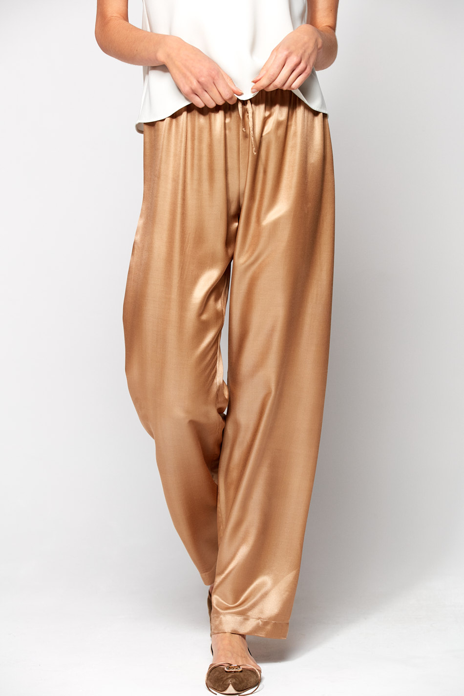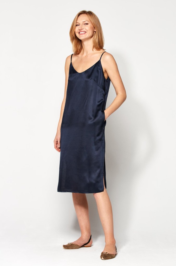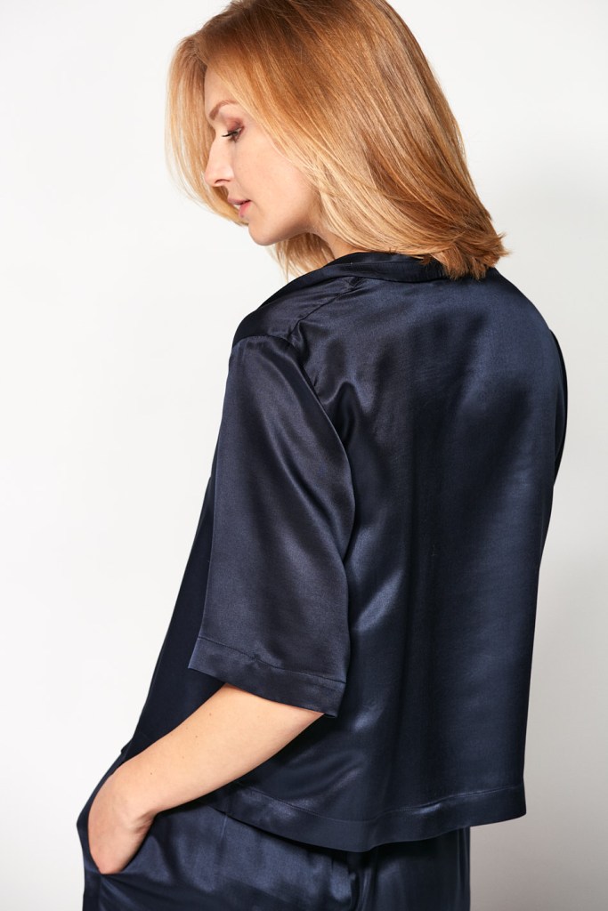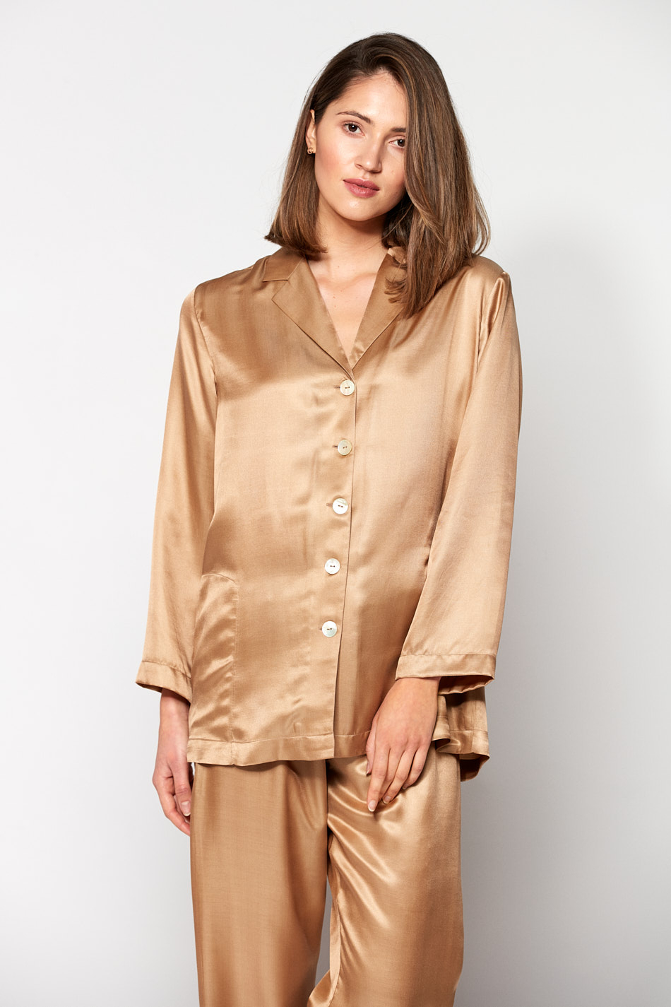 Eleganckie, minimalistyczne formy piżam z długim lub krótkim rękawem, halka na ramiączkach i szlafrok w kolorze starego złota lub atramentowego granatu to ponadczasowe wzornictwo, które dzięki wysokiej jakości materiałom będzie nam służyć na długi czas.