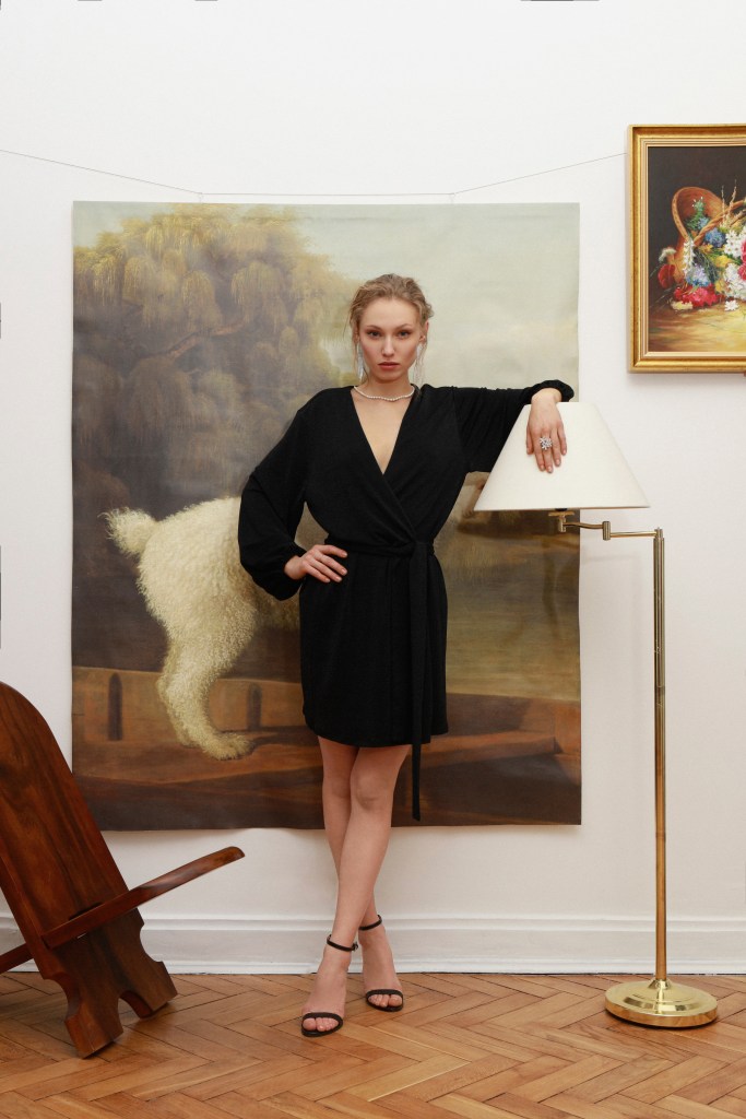 Prawdziwym hitem tej kolekcji jest z pewnością koralowa sukienka z żakardowej wiskozy. Nie tylko sam materiał, ale też i efektowny krój rękawa przywodzą na myśl lata 80. Podobnie jest z kimonową sukienką w odcieniu kości słoniowej czy kopertową sukienką z długim rękawem zakończonym bufką. Z łatwością możemy osadzić te elementy w kontekście czasowym, jednak są one na tyle ‚uspokojone’, że z powodzeniem mogą stać się naszymi towarzyszkami na co dzień.