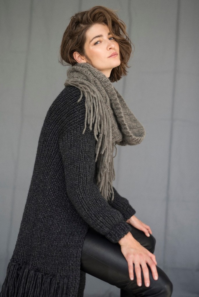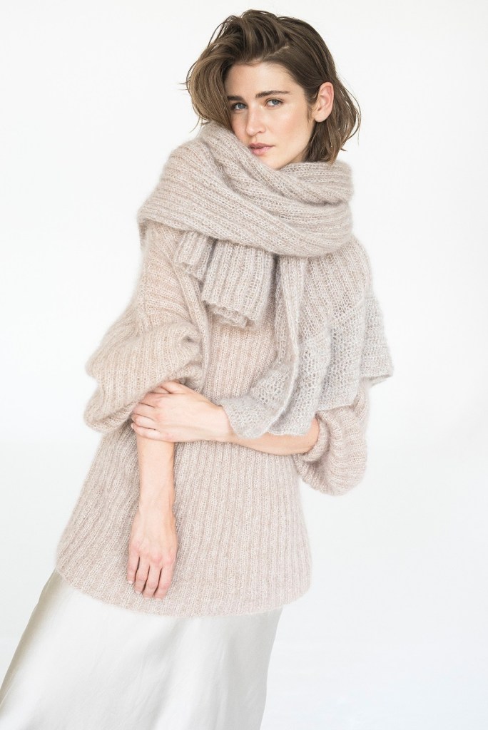 Choć projektantka zazwyczaj stosuje mocne kolory włóczek jak amarant, czerwień czy pastelowy fiolet, nadal jej ulubionymi pozostają odcienie szarości, beżów i brązów. Nowa kolekcja to właśnie paleta ciepłych odcieni ziemi, przełamana grafitową czernią. Oprócz swetrów znalazło się również miejsce na ciepłe czapki, przytulne szale i poncza z frędzlami.