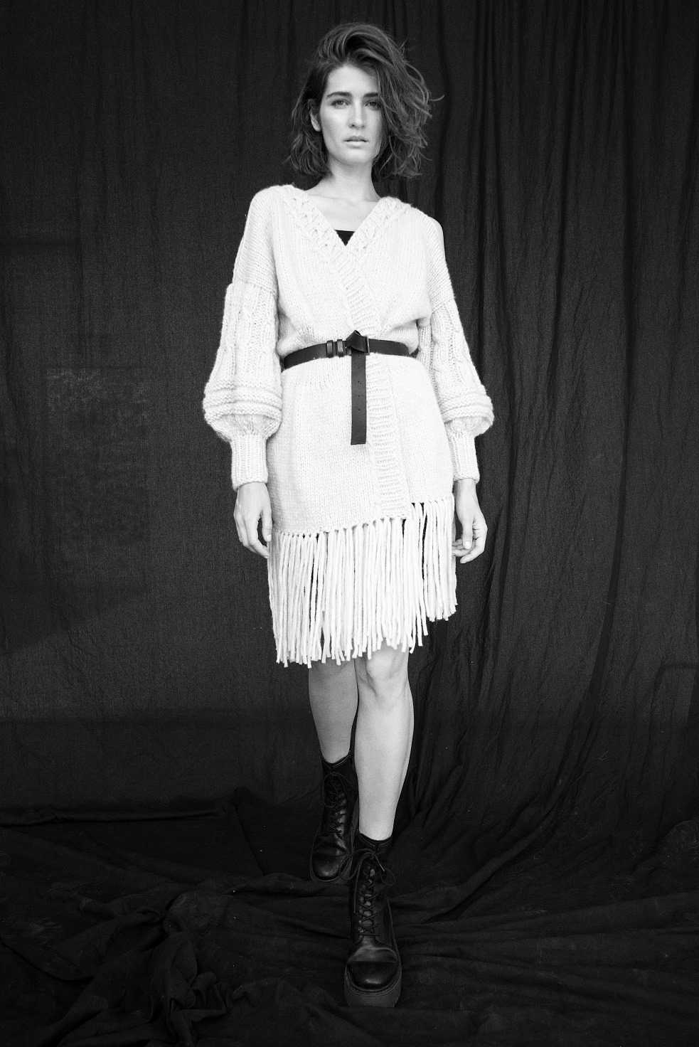 W jesienno-zimowej kolekcji ponownie przewija się wątek odsłaniania ciała: subtelne pęknięcia na ramionach, dyskretnie odsłonięte plecy, ażury i zaskakujące asymetrie. Nawet w dzianinach można pokusić się o wprowadzenie odrobiny trendów: Szymańska wzbogaciła długie kardigany i mięsiste swetry o rzędy grubych frędzli. Wykorzystane detale wynoszą zwykłą dzianinę do rangi stroju niemal wieczorowego.