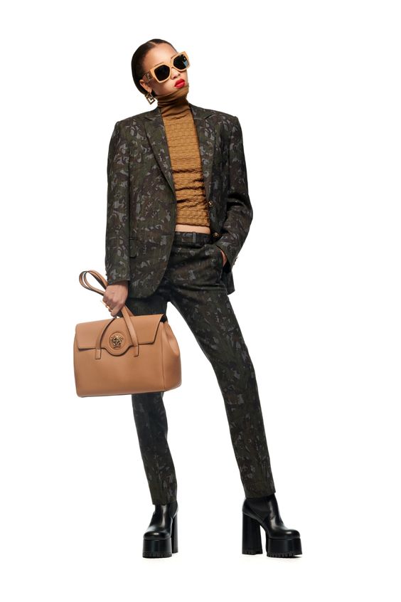 Nadchodząca jesień według Versace będzie obfitowała w ubrania przynoszące komfort, wykonane z naturalnych materiałów (również z recyklingu) i wnoszące pozytywne emocje. Poszczególne elementy wyglądają na łatwe do noszenia i proste w odbiorze, jednocześnie nie tracąc DNA marki.