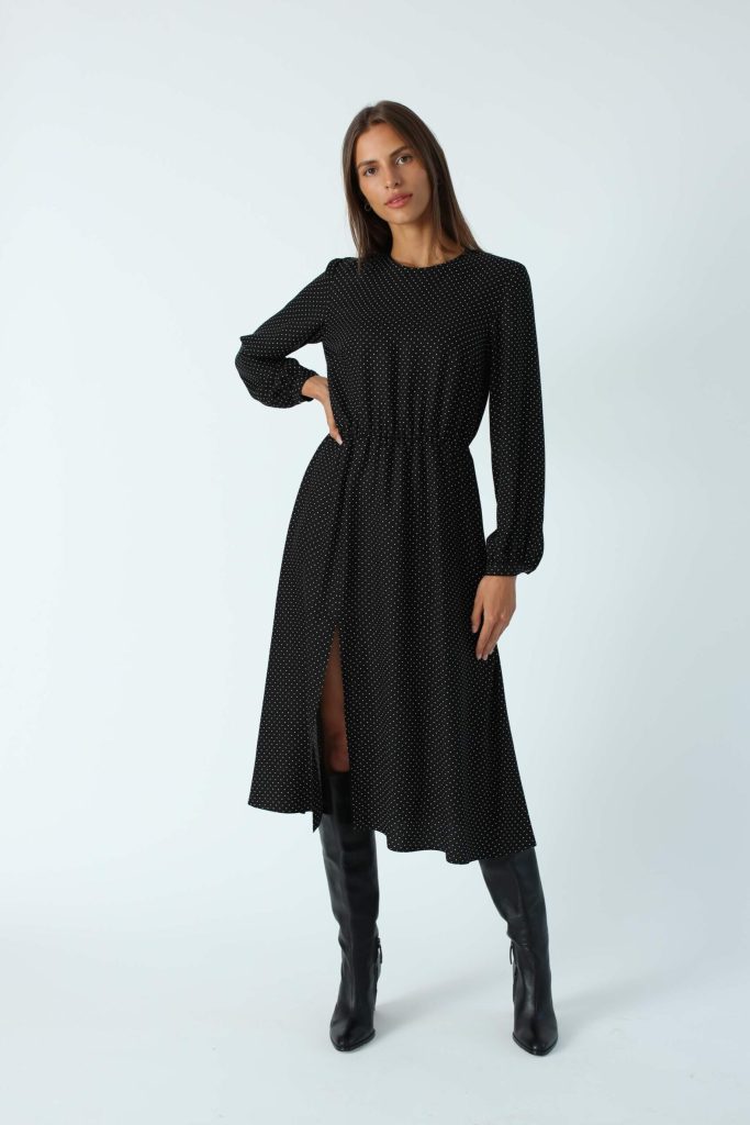 Są to ubrania pozbawione skomplikowanych detali, zbędnych zdobień i nietypowych krojów, dzięki czemu stanowią doskonałą podstawę do budowania minimalistycznej garderoby. Jednak oprócz biurowych koszul i T-shirtów znajdują się tutaj takie smaczki, jak koszula z efektownie nadmuchanym rękawem, top z koronkowym dekoltem czy ultrakobieca sukienka w kropeczki z głębokim rozcięciem odsłaniającym nogę.