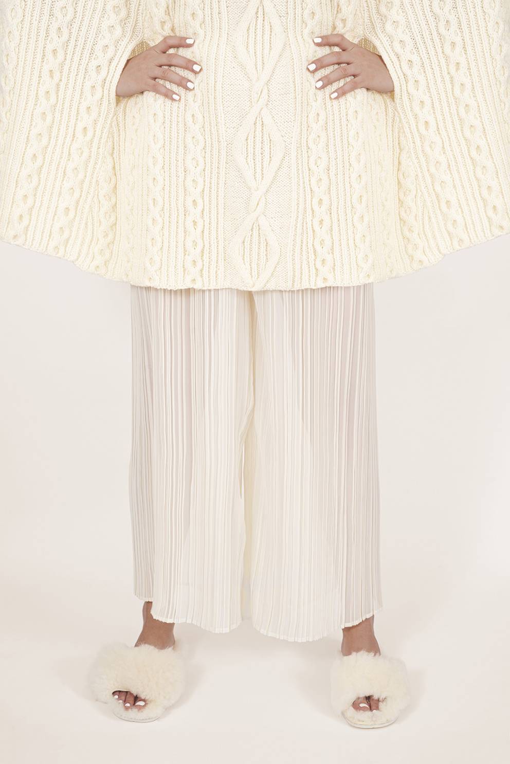 W kolekcji pojawiły się kultowe rogożynowe shoppery, wiklinowe koszyki o okrągłym kształcie oraz modne plecione siatki na zakupy, tym razem jednak wykonane ze skórzanych rzemyków. Wszystko w naturalnych odcieniach beżu i brązu, choć pojawia się również elegancka czerń. Natomiast prawdziwym hitem są nowości wydziergane na drutach – dzianinowa peleryna oraz kamizelka z trójwymiarowym splotem. To ukłon w stronę rękodzieła, ale też najnowszych trendów: kamizelki z dzianiny od kilku sezonów nie opuszczają wybiegów, świetnie przyjęły się również na co dzień.