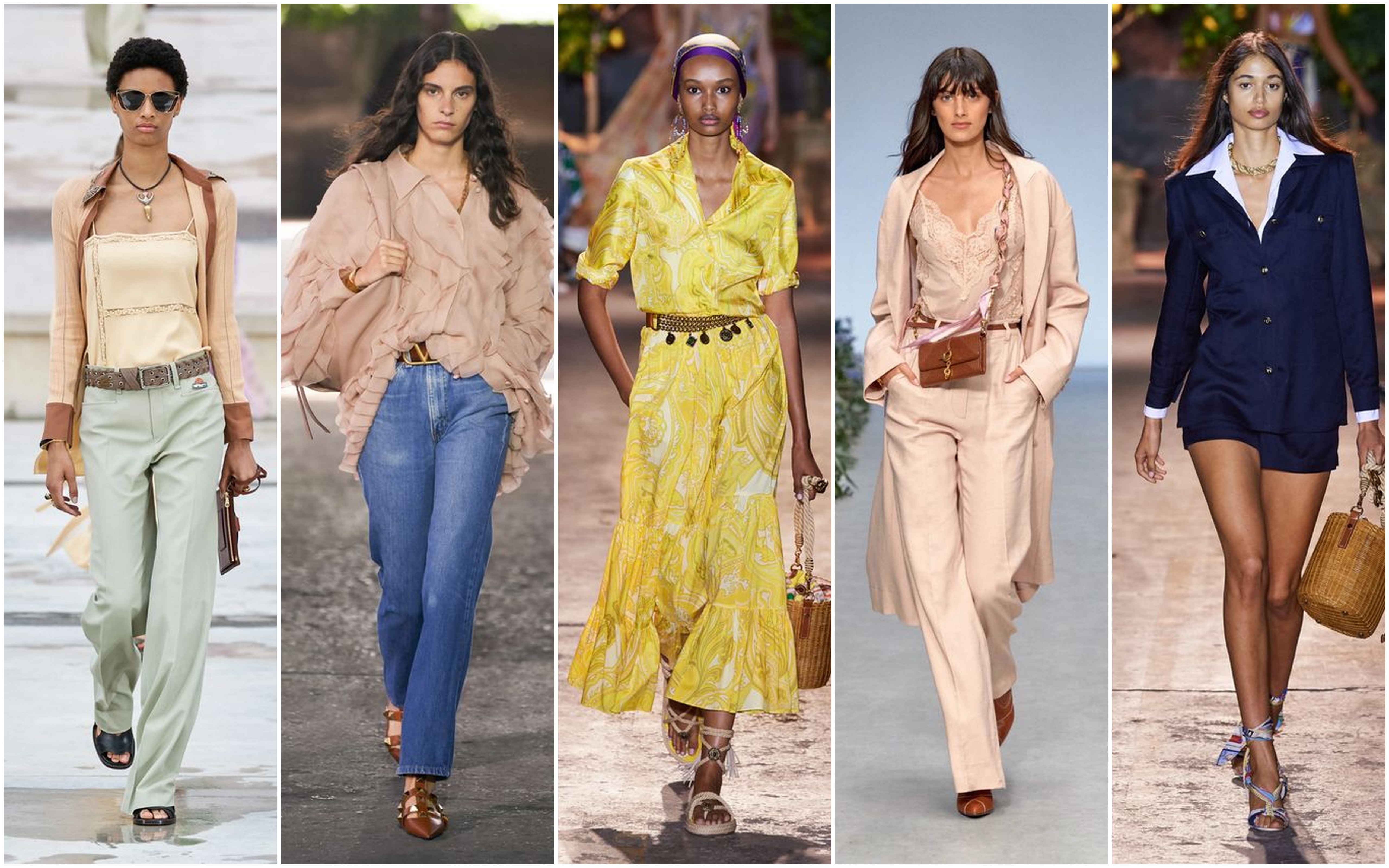 Nie tylko ostre kołnierzyki koszul wykładane na wierzch marynarki, ale też falbaniaste bluzki, spodnie z szeroką nogawką i akcenty w stylu boho. Trzymamy się stonowanej palety barw i naturalnych materiałów.