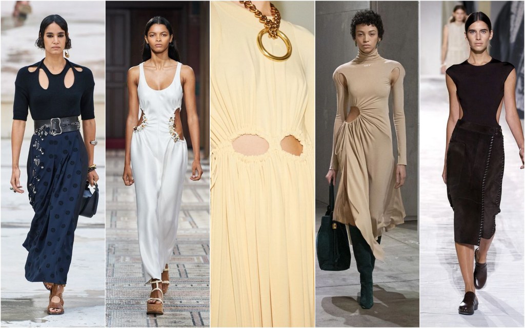 Dawno nie widziane na wybiegach pęknięcia, wycięcia i dziury, często regulowane za pomocą troczków, zawojowały kolekcje projektantów. Ważne, by zachować odpowiednie proporcje – odkrywając kawałek talii czy biodra, zadbajmy o stosowną długość, najlepiej midi lub wygodną maxi.