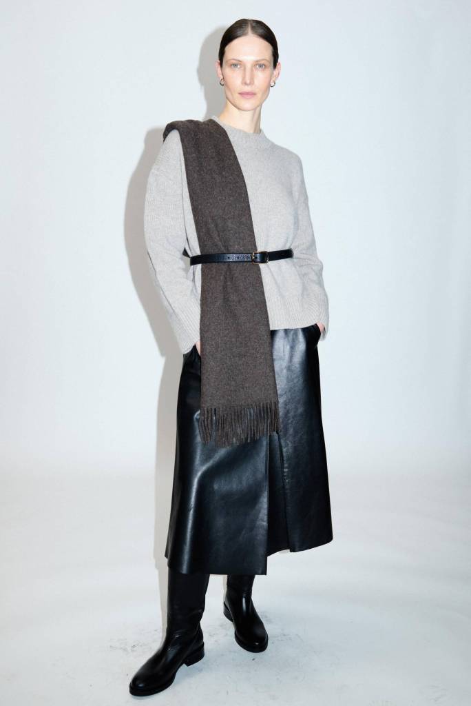 W kolekcji znalazły się absolutne klasyki marki: płaszcze, marynarki, koszule i swetry o oszczędnych formach, ze szlachetnych materiałów zapewniających miękkość, ciepło i wygodę. Koszule noszone warstwowo – z gładkim golfem pod spodem lub dzianinową kamizelką na wierzchu, niebieski denimowy komplet w stylu lat 90., sukienki midi o luźnym kroju – wszystkie te elementy są już nam dobrze znane, jednak nadal dają spore pole do interpretacji i stylizowania ich na wiele różnych sposobów.