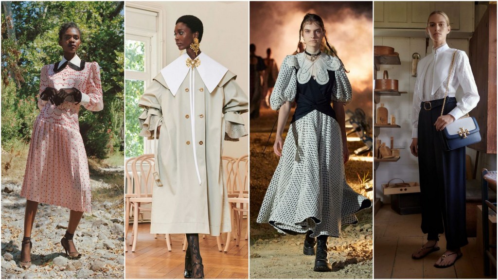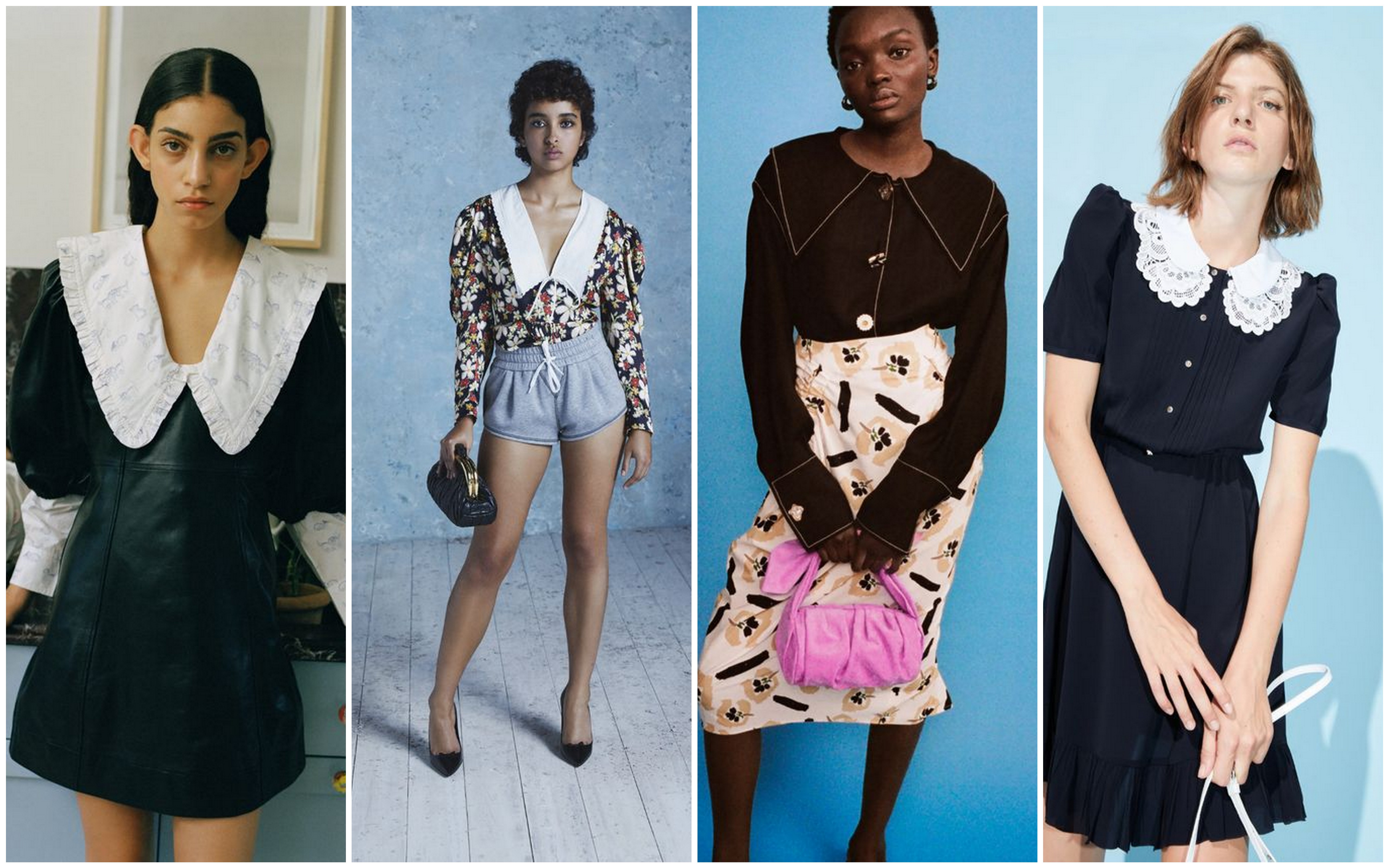 Duże kołnierze w stylu retro królują na wybiegach i ulicach już od kilku sezonów, za sprawą duńskiej marki Ganni. Tym bardziej cieszy nas, że nadal pojawiają się w kolekcjach projektantów. Panuje dowolność kształtów: modne są zarówno te wydłużone, okrągłe czy ostro zakończone w stylu lat 70. Jest to też świetna okazja do upcyklingu – możemy wykorzystać stare ubrania do uszycia swojego unikalnego kołnierzyka!