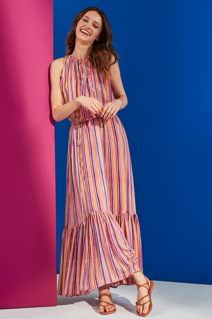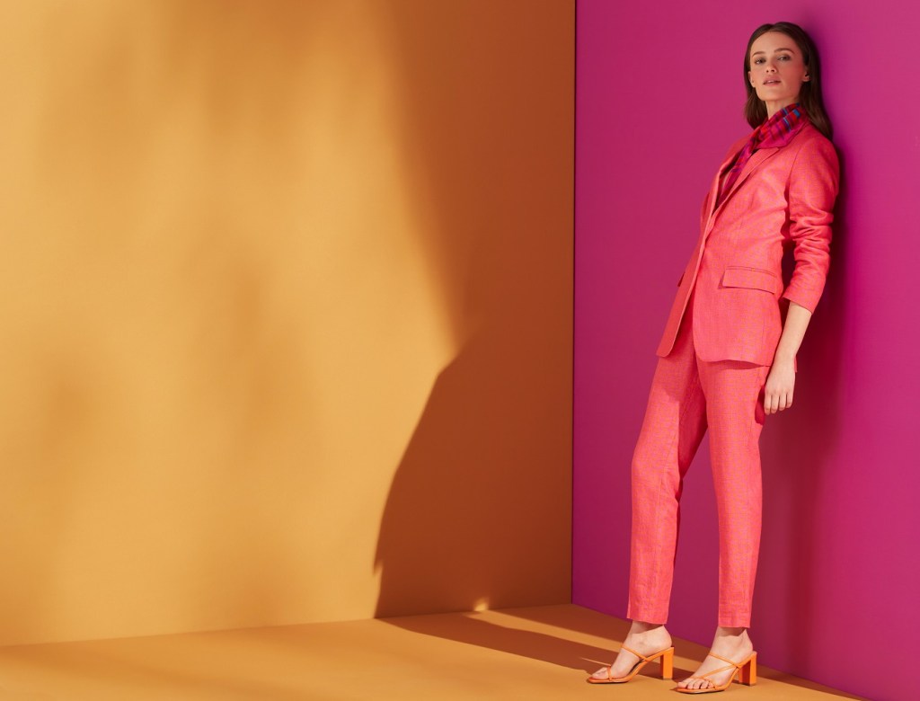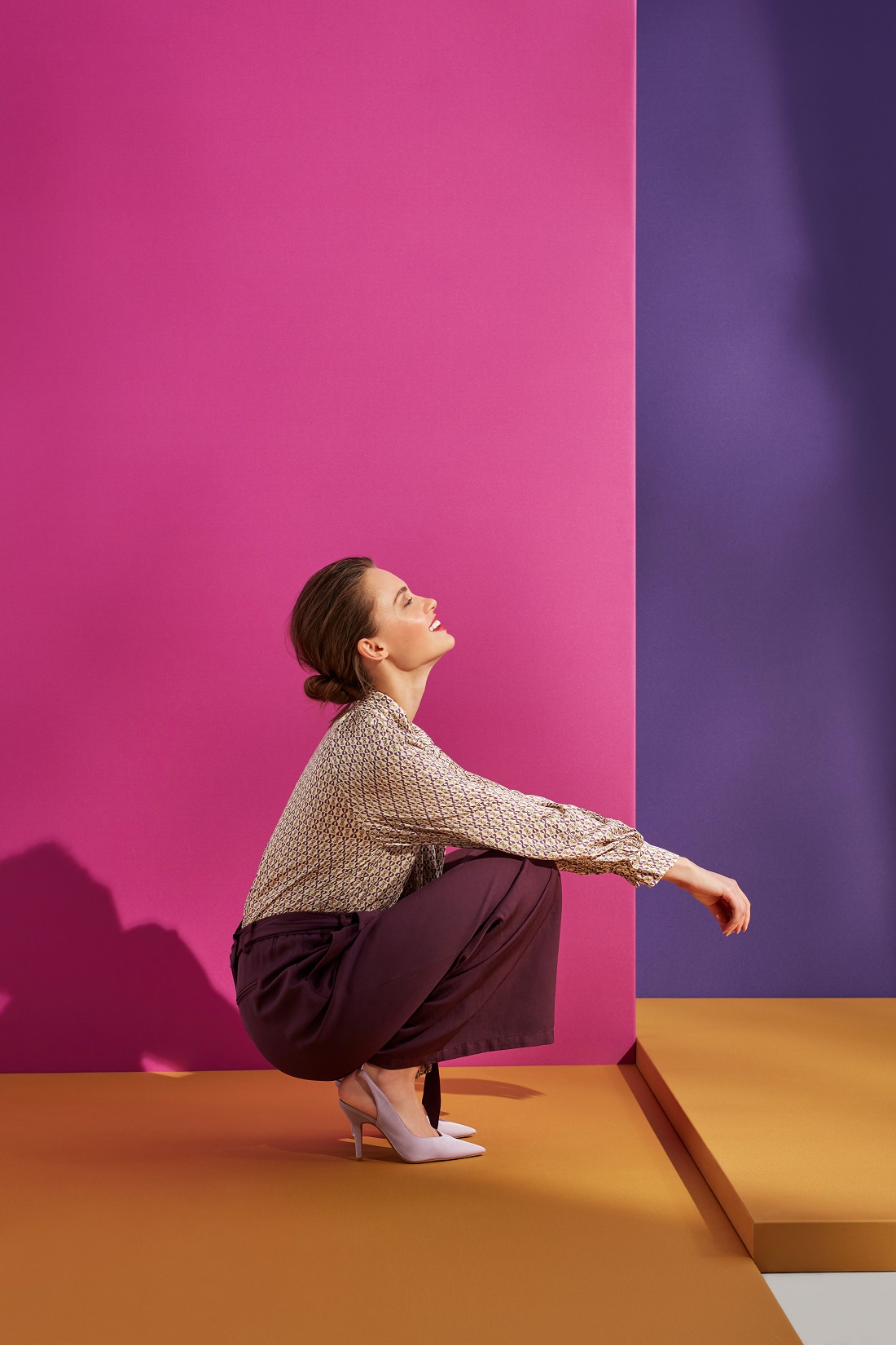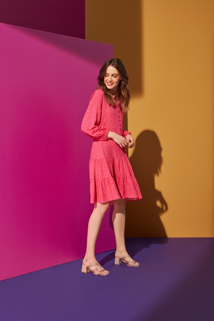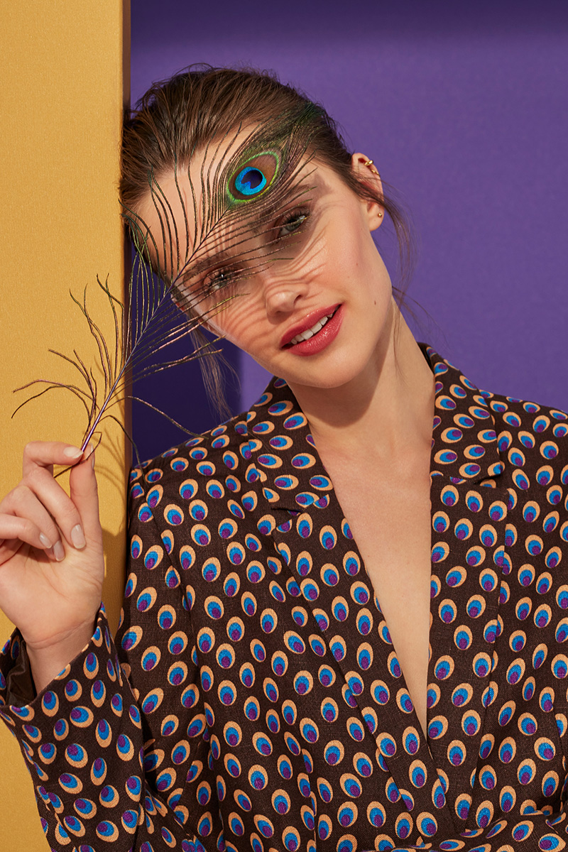 Ubrania wiosennej kolekcji są zachowawcze pod względem fasonów – znajdziemy tu między innymi spodnie cygaretki, lekko przedłużane marynarki, wiązane pod szyją bluzki oraz swobodne, trapezowe sukienki w modnej długości midi lub mini. Gdzieniegdzie pojawia się detal w postaci asymetrii spódnicy czy kloszowanego rękawa. Jednak zastosowanie nowych autorskich tkanin oraz folkowych haftów sprawia, że każdy element jest wyjątkowy, a zarazem można je swobodnie łączyć z ubraniami z poprzednich sezonów.