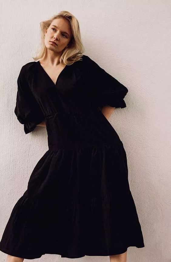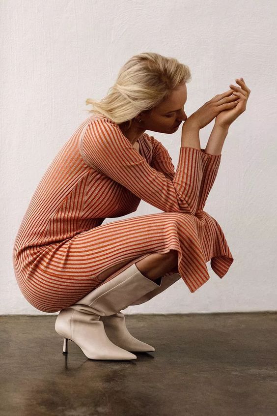 Do wyprodukowania dzianinowych sukienek zastosowano technikę Plater, łączącą dwa kolory przędzy, dzięki czemu uzyskano interesującą prążkowaną fakturę. Dzianina składa się z certyfikowanej wiskozy ECOVERO i w 20% z wiskozy z recyklingu. Podobnie jak inna nowość, kremowy sweter, w którego skład wchodzi 40% bawełny pochodzącej z recyklingu. Marka dba również o wykorzystywanie odnawialnych źródeł energii podczas produkcji, dzięki czemu emisja dwutlenku węgla spada do zera. Wiele projektów powstało z materiałów pozostałych z poprzednich kolekcji, co sprawia, że będą dostępne w limitowanych ilościach.
