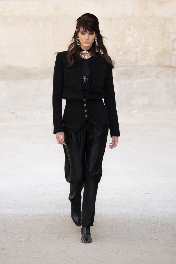 By uniknąć skojarzeń z pustynią i Egiptem, Viard postanowiła, że sylwetki muszą być mocne, stąd w kolekcji dominuje połączenie czerni i bieli, jednak w nieco bardziej podkręconej, rockowej odsłonie. Oczywiście znalazło się miejsce dla klasycznych żakietów boucle, spodni palazzo i zwiewnych sukienek maksi, jednak całość opierała się na długości mini, frędzlach, dzianinach i skórach nabijanych ćwiekami. Sylwetki wzbogacono o masywną biżuterię, łańcuszki i torebki w formie podwiązek.