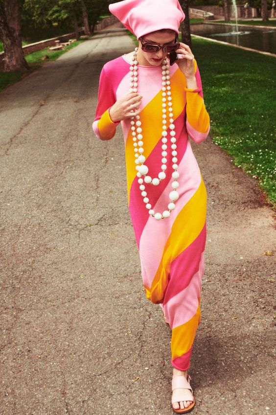 Wakacyjne ubrania specjalnie na wyjazdy do modnych kurortów zostały tu jednak wyniesione na wyższy poziom. Poza wygodnymi dzianinowymi setami, dżinsowymi szortami i sukienkami maksi w stylu lat 70., idealnymi do zwiedzania miasta, główne skrzypce grają tutaj suknie i sukienki w kwiatowy wzór, łączone w pełny przepychu sposób z masywną biżuterią i przekornie z chustką zawiązaną na głowie.