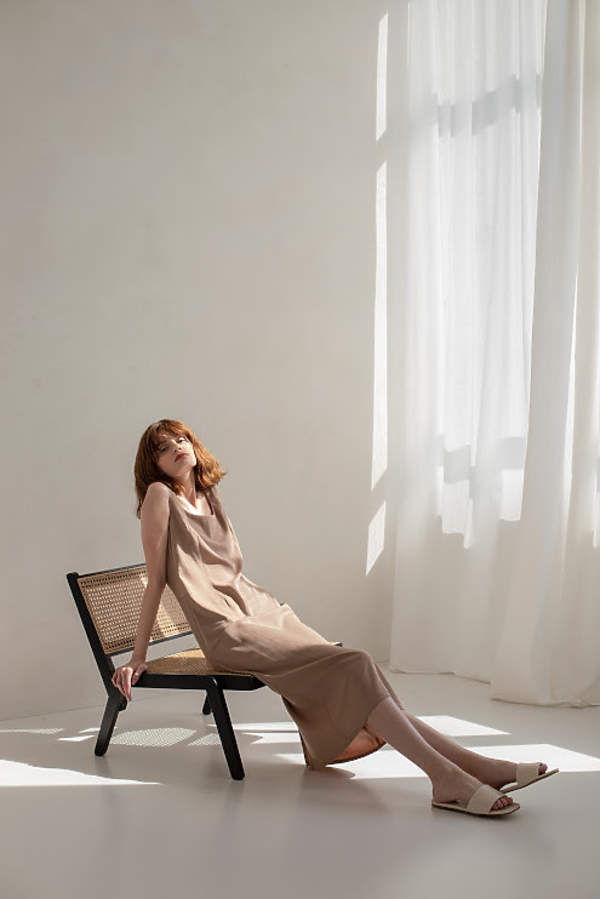 W premierowej kolekcji znalazły się dwa modele sukienek, T-shirt, koszula, top oraz spodnie w neutralnych kolorach: bieli, odcieniach beżu oraz czerni. Taka ilość elementów w zupełności wystarcza do zbudowania letniej kapsułowej garderoby, a stonowana kolorystyka pozwala na łączenie ich z ubraniami, które już posiadamy. Sukienka Maya – sięgająca za kolano, o prostym kroju i bez rękawów to jeden z najbardziej minimalistycznych projektów z całej kolekcji. Sharon to bardziej dziewczęcy model, z długim rękawem zakończonym mankietami, stójką oraz tasiemką do wiązania w pasie. Występuje w czerni oraz w wersji karmelowej z nadrukiem groszków.