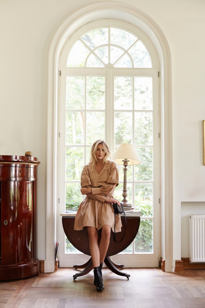 Stąd w kolekcji znalazły się charakterystyczne dla marki sukienki, koszule i spódnice z falbanami, marszczeniami i efektownie nadmuchanymi rękawami, o ciekawych konstrukcyjnie rozwiązaniach, jednak utrzymane w stonowanych kolorach: beżu, czerni i ecru. Dzięki temu pomimo takiej ilości warstw, falban i bufek nadal są one eleganckie i kobiece. Sukienki i spódnice występują w długościach zarówno mini jak i midi, koszule natomiast można nosić w komplecie z efektowną falbaniastą spódnicą lub z prostymi dżinsami czy szortami.