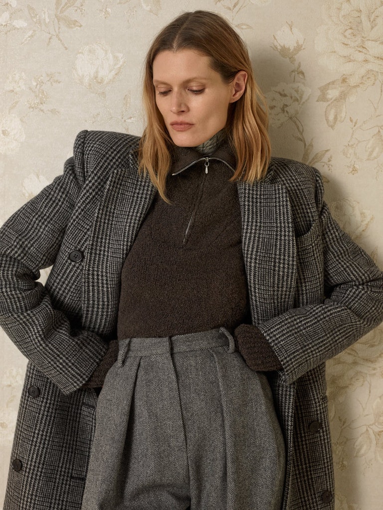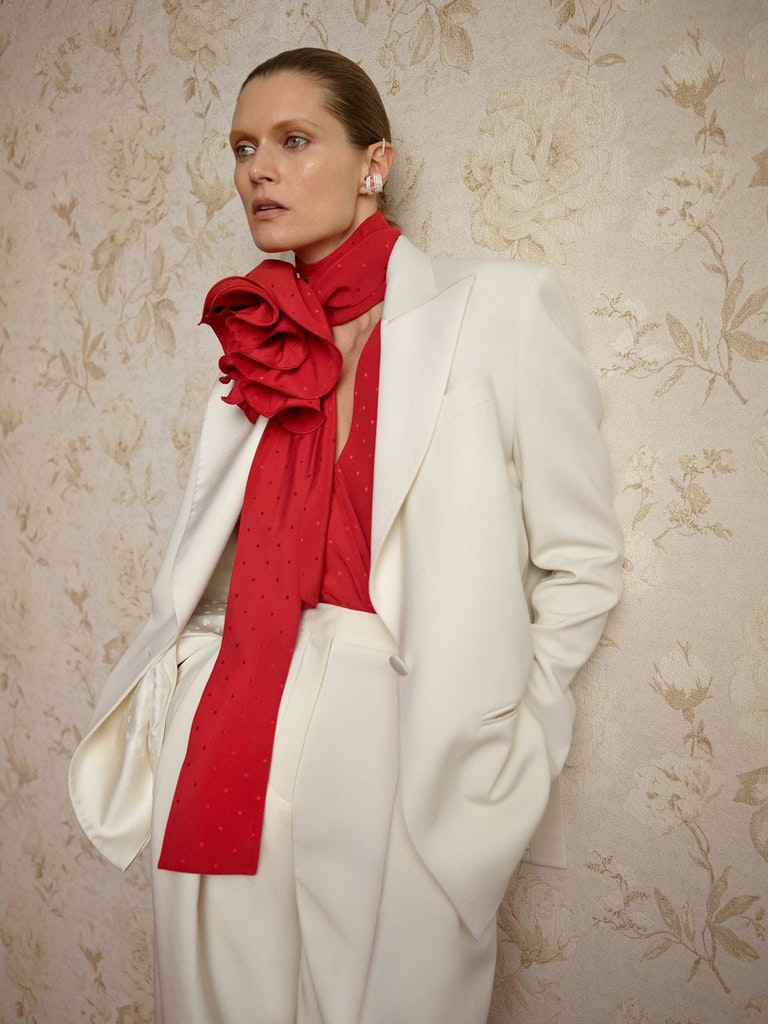 W nowej, jesienno-zimowej kolekcji Magda Butrym bawi się konwencją lat 80., porzucając na chwilę inspiracje dzikim zachodem na rzecz klasyki spod znaku power dressing. Pudełkowe marynarki i płaszcze, spodnie z wysokim stanem i zakładkami, noszone z koszulą wiązaną pod szyją lub gładkim golfem to propozycje dosłownie wyjęte z epoki. Świetnej jakości wełny w prążek, jodełkę i kratę to absolutne jesienne klasyki, które można śmiało nazwać ponadczasowymi.