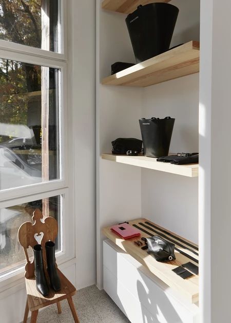 Punktem wyjścia była biel, symbol nowego początku i odrodzenia. W kontrze do czystej przestrzeni pojawiły się elementy z organicznego drewna, krzesła inspirowane góralską tradycją z Polski i Portugalii, a także złote logo marki wykonane z prawdziwych płatków złota przez pracownię Swada. Z zewnątrz uwagę zwraca czarna fasada z przeszkloną witryną, inspirowana latami 30. Nowy butik zawiera wszystko, co charakterystyczne dla stylu projektantki: minimalizm, przywiązanie do tradycyjnego rzemiosła i konsekwencję.