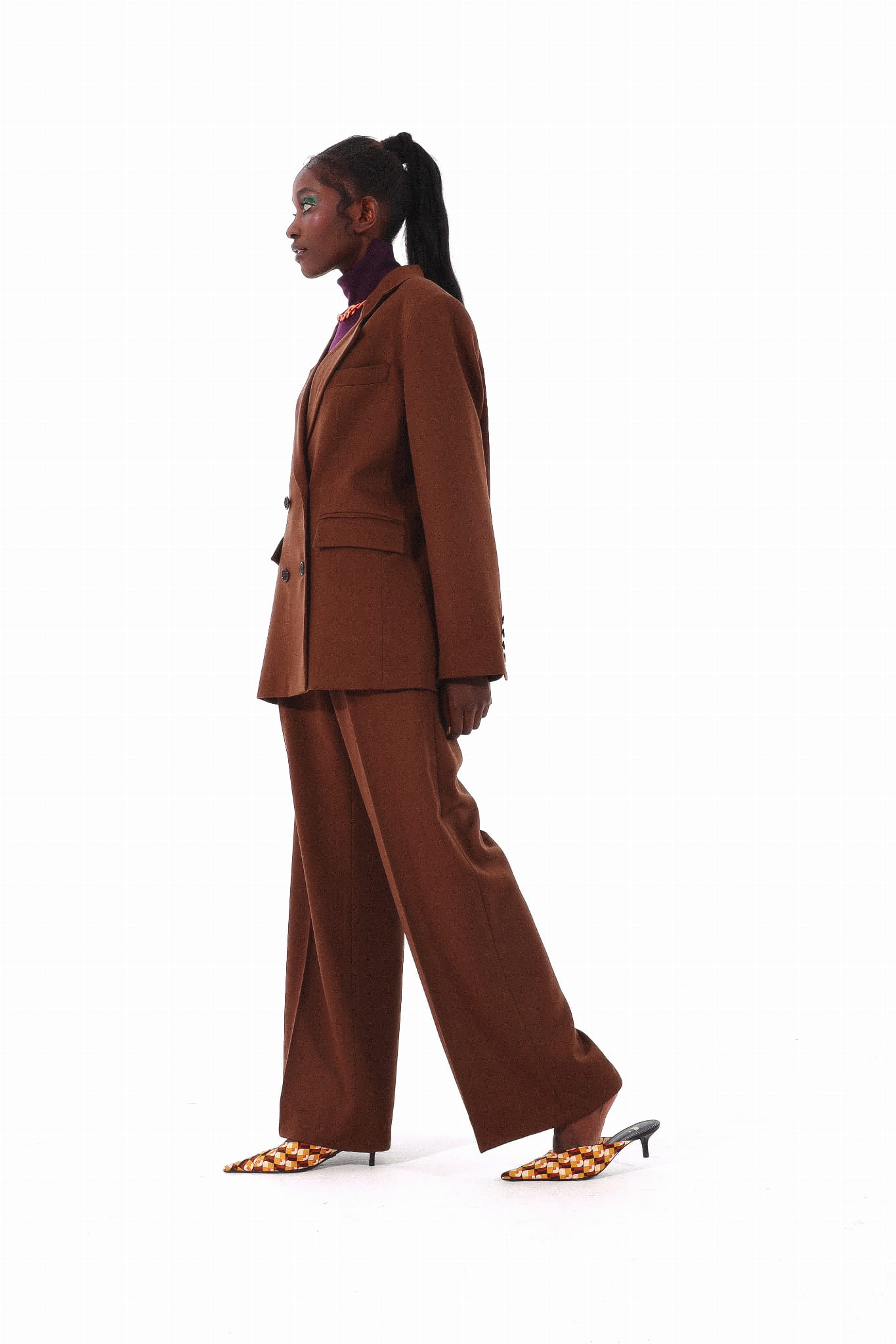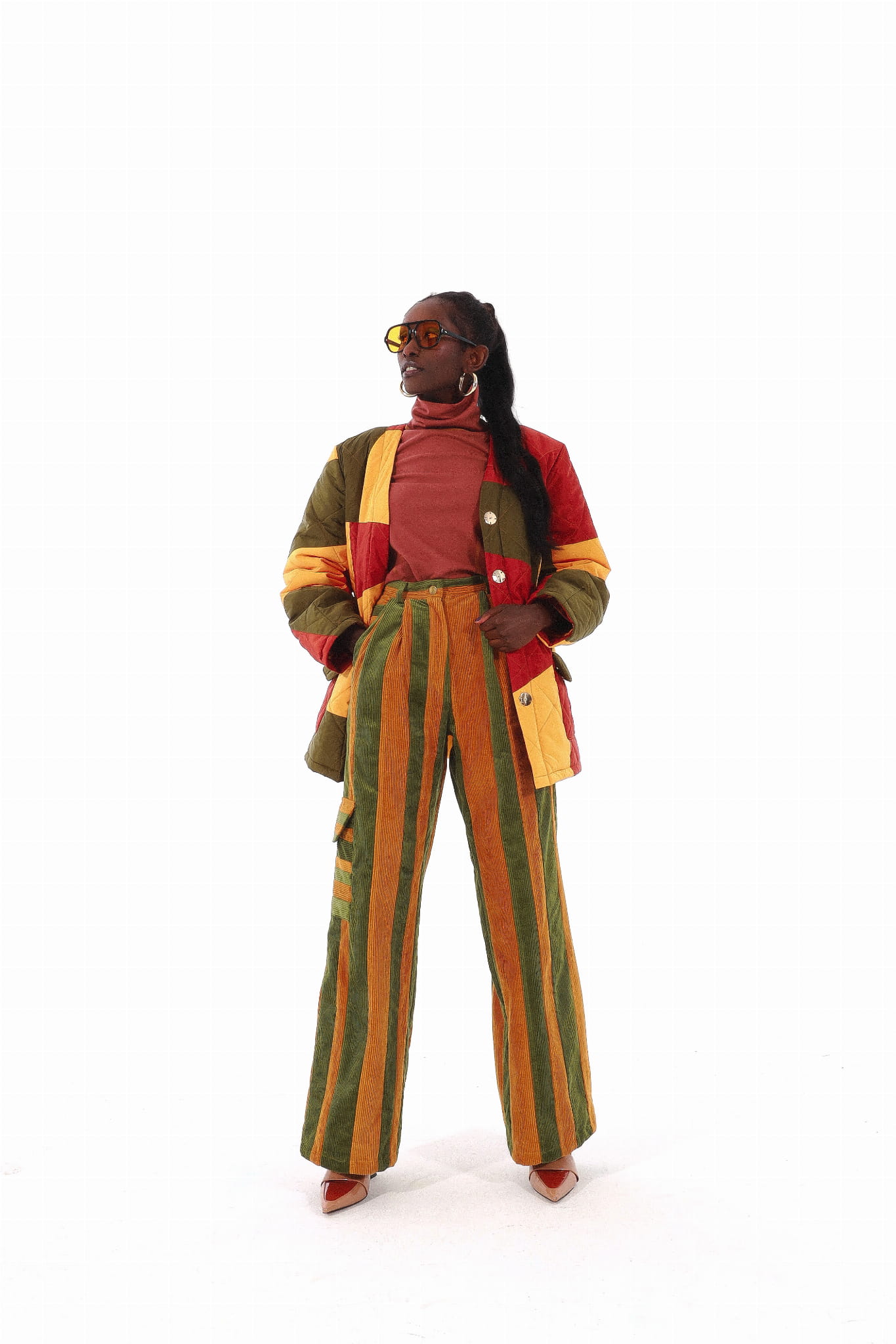Mowa wciąż o sezonie jesienno-zimowym, dlatego w kolekcji nie mogło zabraknąć garderoby o tym charakterze. Pojawiły się między innymi obszerne płaszcze, zarówno w czerni jak i w kraciasty wzór, patchworkowe kurtki czy też inspirowane kopenhaskimi ulicami pikowane kamizelki. Projektantka stworzyła również garnitur w najmodniejszym kolorze sezonu – czekoladowym brązie.