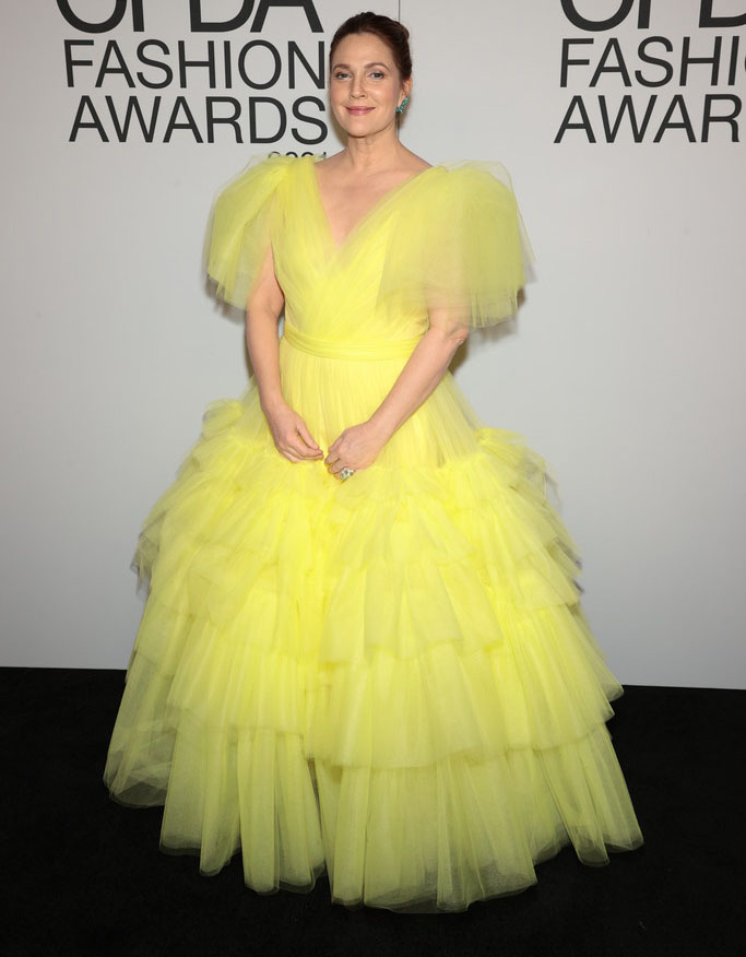 Kolejna laureatka tegorocznej imprezy, Anya Taylor-Joy, wybrała odważną krótką sukienkę z baskinką w intensywnym fiolecie, w połączeniu z cętkowanymi rękawiczkami i aksamitnymi butami. Strój doskonały do tak wyrazistej osobowości na kimś innym wypadłby z pewnością mniej korzystnie. Aktorka Drew Barrymore rówież postawiła na mocny kolor – pojawiła się w neonowej żółtej sukni z kaskadami tiulowych falban. Z kolei Emily Blunt zachwyciła prostotą swobodnego garnituru w kolorze dojrzałego mango.