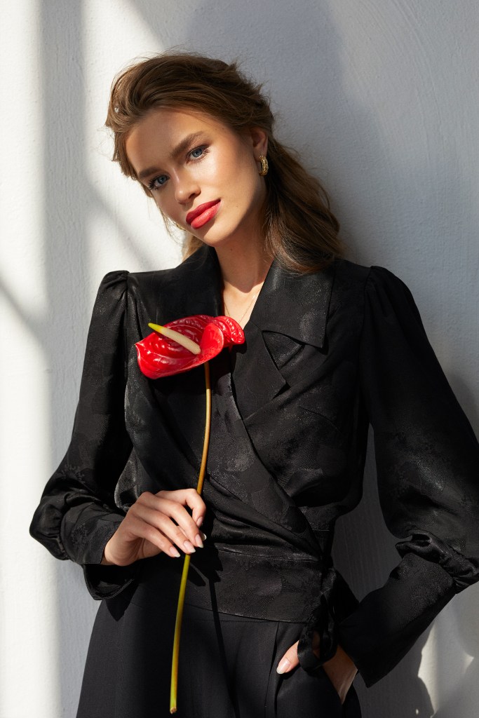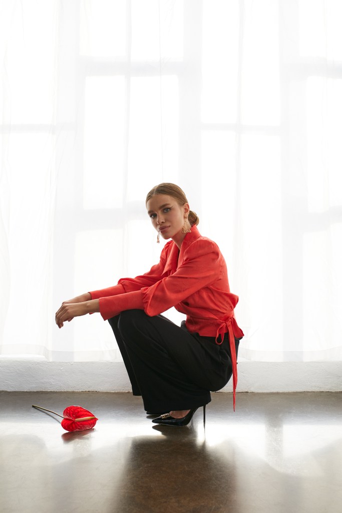 Sporo dzieje się w kategorii koszul. Kultowa Sublime z mankietami zapinanymi na spinki powraca w nowych kolorach: soczystej zieleni i energetycznym fiolecie. Classy to wariacja na temat jednego z pierwszych projektów Karoliny Naji: kopertowy dekolt i kołnierz w stylu retro zostały wzbogacone o efektowne ramiona i odpinane poduszki. Oprócz klasycznej czerni i szkarłatnej czerwieni pojawił się również beż z delikatnym printem w stylu Toile de Jouy.