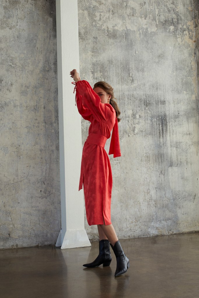Jesienno-zimowa odsłona Karoliny Naji skupia się właśnie na sukienkach. Punktem wyjścia stała się koszula Poem z poprzedniej kolekcji. Bufiasty rękaw, ozdobny dekolt i szarfa pod szyją to kwintesencja kobiecości i nowoczesnego romantyzmu. Sukienka Poem, tak jak jej poprzedniczka, dzięki przemyślanej konstrukcji może być noszona tył na przód dzięki czemu uzyskamy sukienkę ze stójką i efektownym dekoltem na plecach. Jest ona również wyposażona w szarfę do podkreślenia talii.