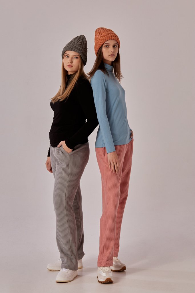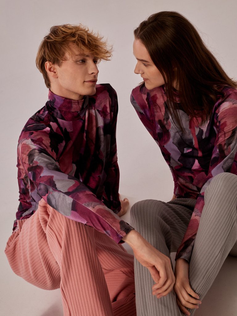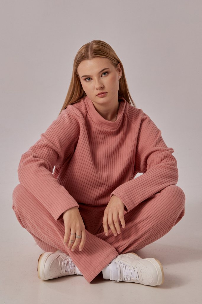 Kolejną nowość stanowi dresowy komplet z organicznej bawełny z wyraźną prążkowaną fakturą. Wygodna bluza z rękawem typu raglan i szerokim półgolfem pasuje na większość sylwetek. Podobnie jak spodnie o luźnym kroju, które sprawdzą się równie dobrze do leżenia na kanapie jak i na wyjście do kina czy na lunch. Piękne odcienie szarości i ciepłego, zgaszonego różu wyglądają świetnie w total lookach lub łączone na zasadzie color blocking, co zachęca do tworzenia dowolnych kombinacji.