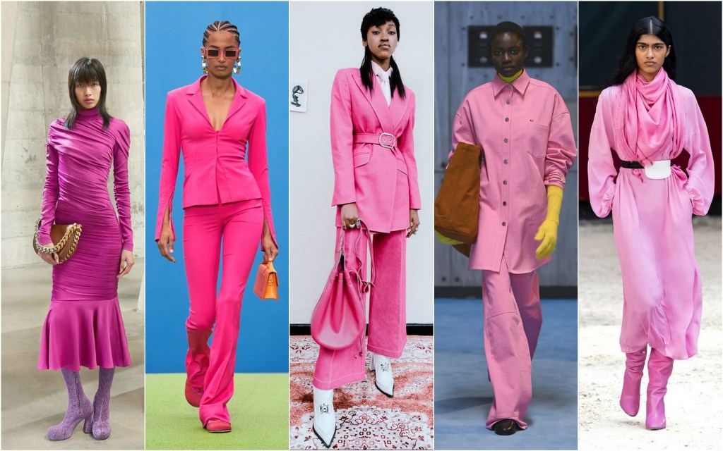 Już nie delikatny i pastelowy millenial pink, lecz jego mocniejszy odpowiednik. Róż w stylu lat 80. prezentuje się świetnie w roli garnituru, przeskalowanej koszuli lub sukienki midi. By uniknąć przerysowanego efektu, warto uzupełnić stylizację o stonowane, minimalistyczne dodatki.