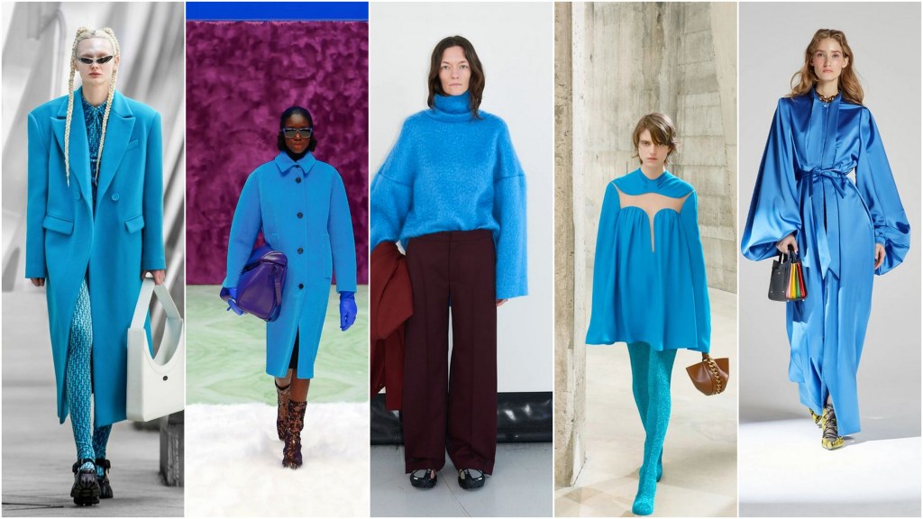 Odcień słonecznego i bezchmurnego nieba nie gości zbyt często w zimowych kolekcjach. W tym sezonie jednak pojawił się on zarówno w total lookach, jak też w postaci pojedynczych elementów łączonych z innymi kolorami, na przykład śliwkowym fioletem. Intensywnie niebieski płaszcz o ciekawym kroju to świetny sposób na urozmaicenie szarej jesiennej garderoby, a wieczorową porą sprawdzi się efektowna sukienka.