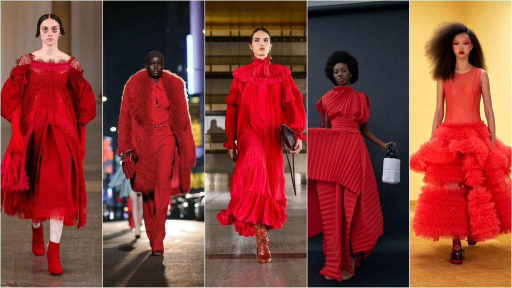 Prawdziwa klasyka, jednak teraz już nie tylko na wieczór. Efektowne sukienki z plisami lub falbanami nosimy również na dzień. Ważne, by kroje były swobodne, im mniej dopasowane tym lepiej. Dla odważnych czerwony total look – płaszcz obszyty futrem, koszula i spodnie lub garnitur to sprawdzony sposób na przyciągnięcie uwagi.