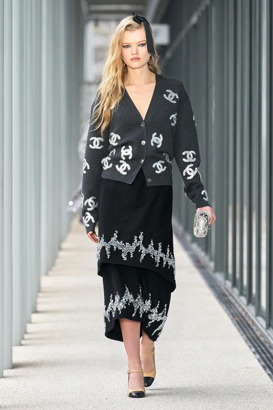 Szlachetne materiały i tradycyjne techniki rzemieślnicze przeplatają się ze współczesną interpretacją dziedzictwa marki. Virginie Viard chętnie sięga po trendy lat 90. i 2000: crop topy, luźne spodnie z obniżonym stanem czy logomanię, oczywiście w stylu domu mody: topy bez ramiączek wydziergane są z grubej dzianiny, spodnie biodrówki posiadają obszerny fason, a logo w postaci skrzyżowanych literek C zdobi kardigany lub jako dyskretny monogram pokrywa długie sukienki.