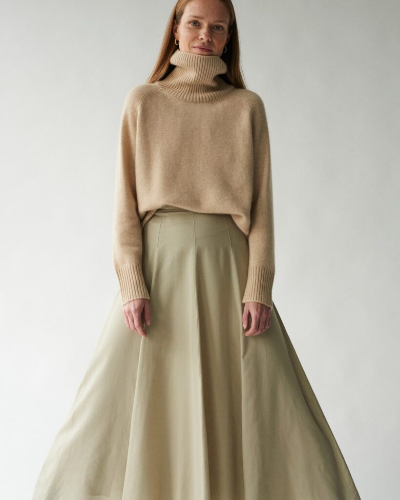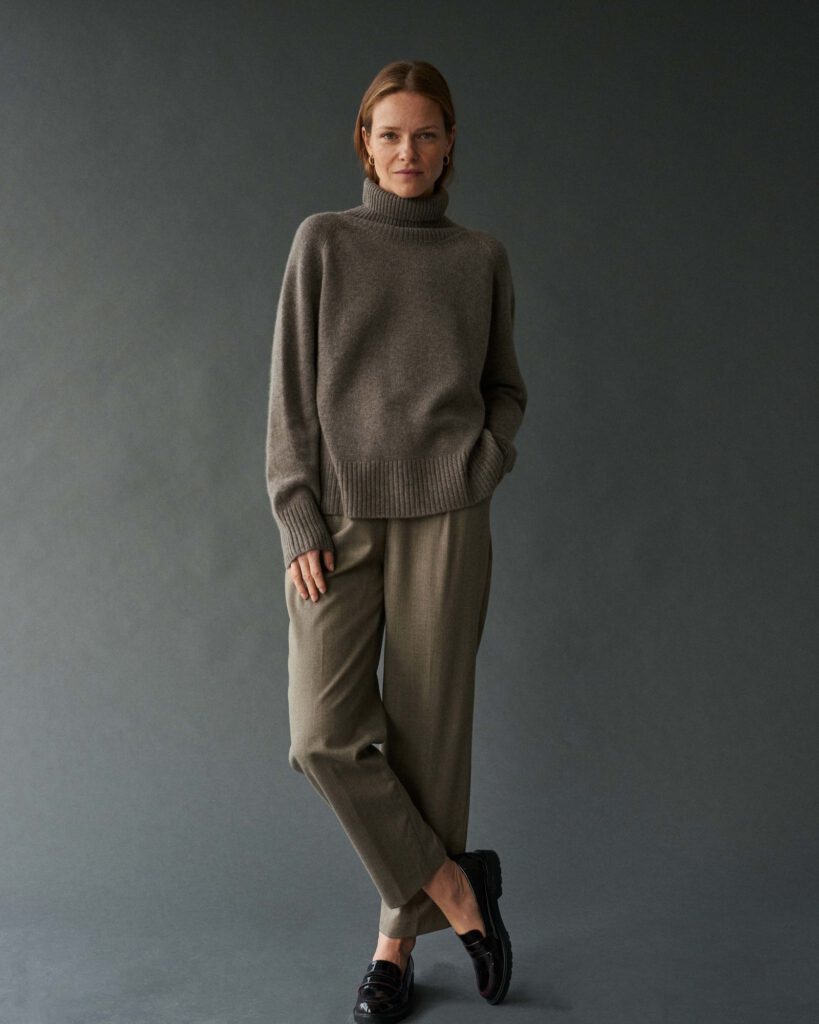 W ofercie marki na sezon jesień/zima 2021 znalazły się swetry o klasycznych, prostych krojach, będące doskonałą podstawą garderoby na wiele lat, bez względu na zmieniające się trendy. Ponadczasowe pulowery z dekoltem V i obszerne golfy o lekko przeskalowanych fasonach zapewniają elegancki wygląd, komfort i swobodę ruchów, a stylizacje w sesji wizerunkowej udowadniają, że klasyczny kaszmirowy sweter to idealna baza dla osób noszących się w różnych stylach, od biurowej elegancji po nonszalancki casual.