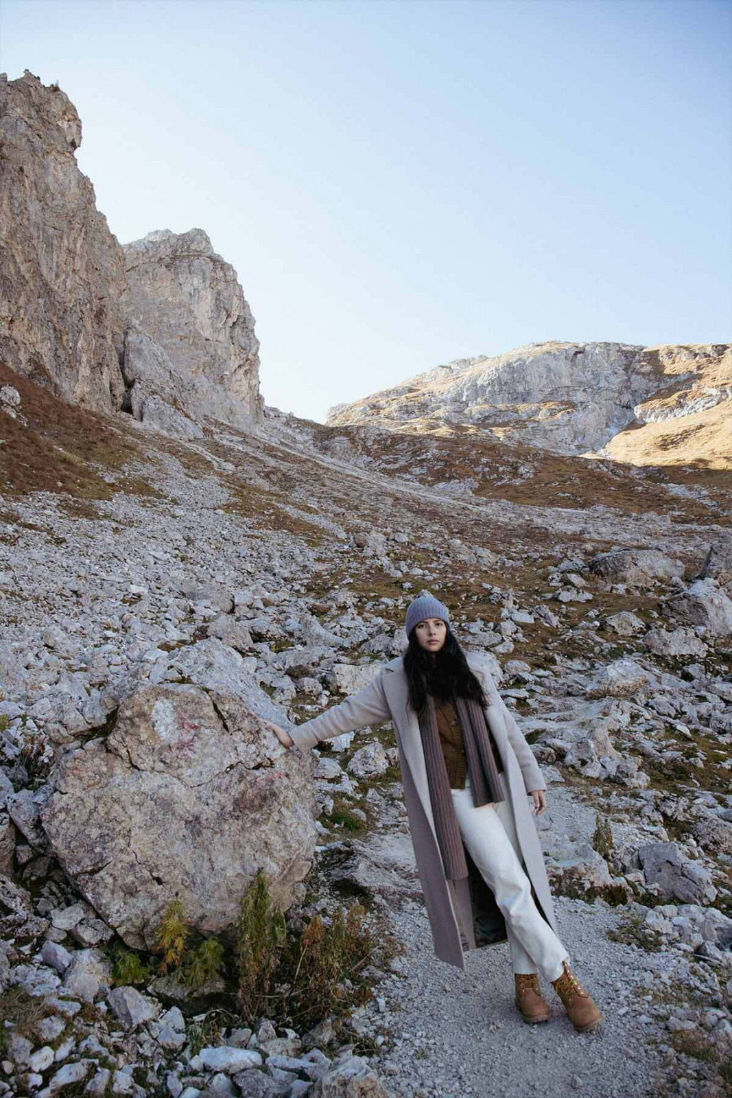 Do zrealizowania kampanii i odzwierciedlenia przewodniej myśli kolekcji „Let’s Breathe”, doskonałą scenerią okazały się bajeczne Dolomity. Bezkresna przestrzeń, bliskość natury i ograniczony dostęp do zdobyczy cywilizacji to wprost idealne warunki, by zatrzymać się i wziąć głęboki oddech. W celebrowaniu chwil spokoju i jedności z naturą pomagają ubrania wykonane z naturalnych materiałów, zapewniające ciepło i wygodę.