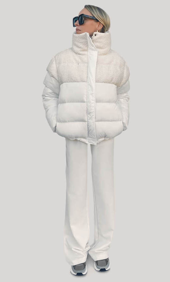 4. Biała kurtka z tweedowym wykończeniem, wypełnienie z gęsiego puchu – Roma Yanota, 1800zł