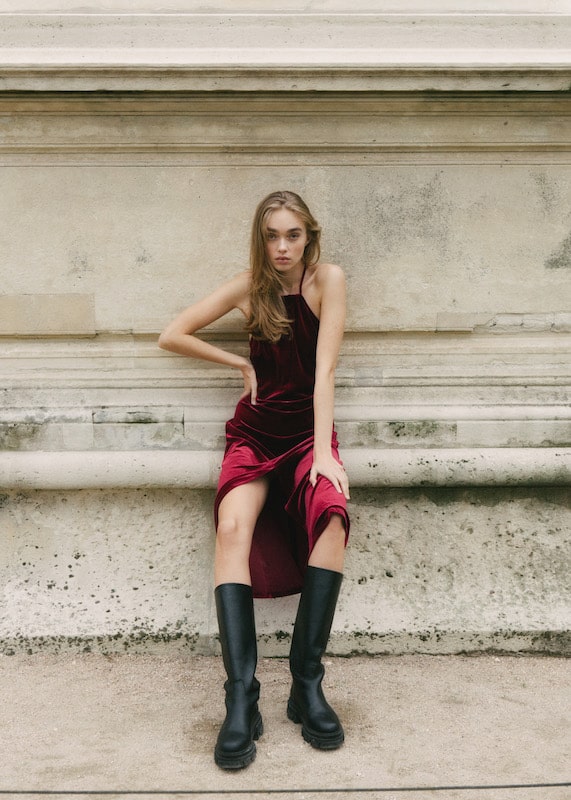 W kolekcji znajduje się zarówno odważna bielizna, jak i ubrania gotowe do noszenia na co dzień. Prym wiedzie welur w kolorze czerwonego wina i czerni. Z niego powstały sukienki – midi zmysłowo odsłaniająca plecy i trapezowa sięgająca kolan, oraz spódnice – mini z rockowym rozcięciem i jej odpowiedniczka długości midi. Są też pasujące do spódnic bluzki z bufiastym rękawem i takież same body. Zmysłowe, kobiece, nonszalanckie, wciąż jednak mieszczące się w ramach garderoby codziennej.