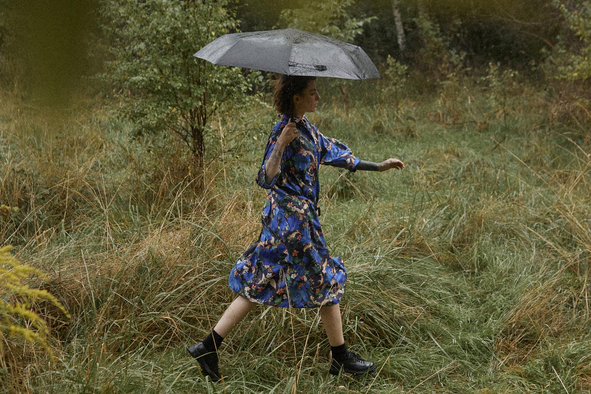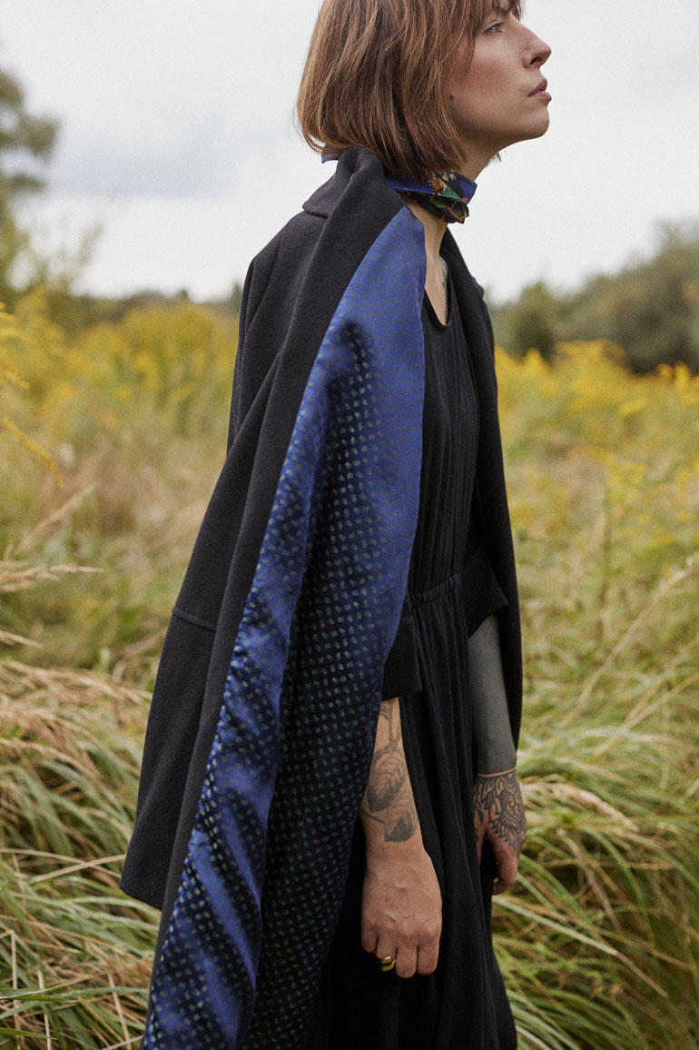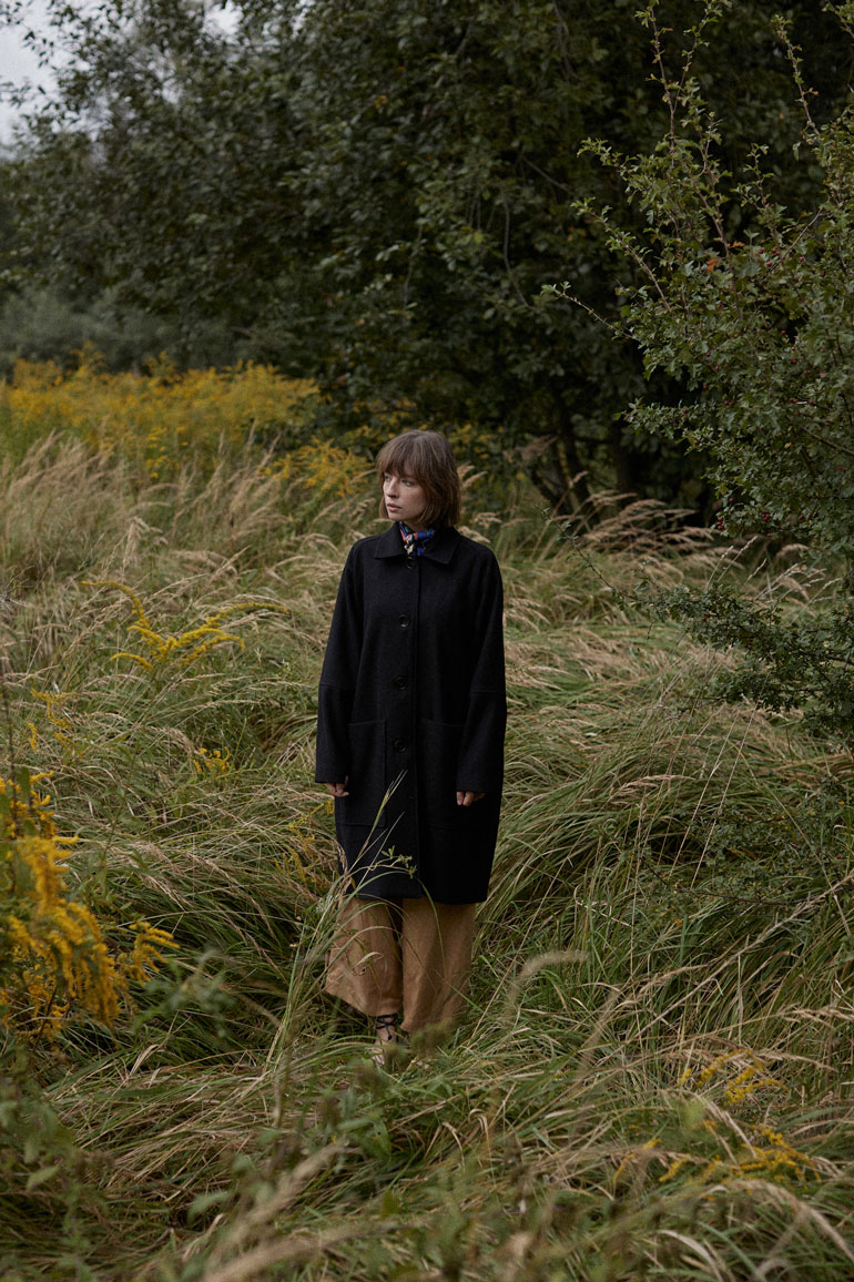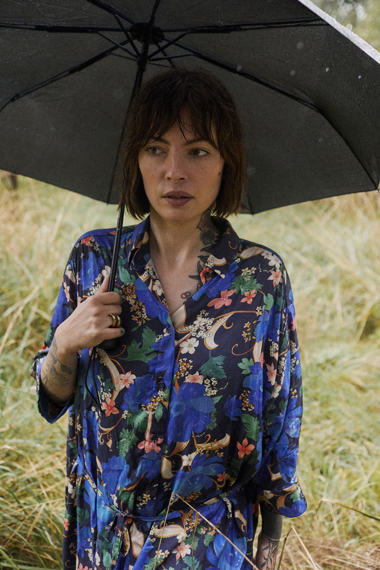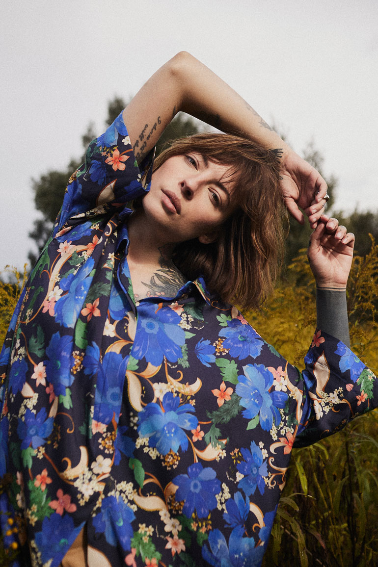 Kolekcję uzupełnia klasyczny jednorzędowy trencz inspirowany męskim płaszczem, wpisujący się w stonowaną, grafitowo-szaro-beżową paletę. Natomiast kropką nad i jest wzorzysta koszula w chabrowe kwiaty stylizowana na vintage. To ona stanowi intrygujący element dopełniający całość i wprowadza odrobinę nowoczesności.