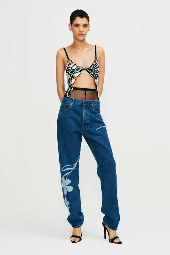 Najlepiej w total looku. Dżinsy o dowolnym fasonie, braletki, spódnice długości midi, koszule, kurtki, kombinezony – każdy chwyt jest dozwolony. Podobnie jak odcień dżinsu i stopień jego sprania. Mile widziane wszelkiego rodzaju przeszycia, hafty i zdobienia. Dżins nosimy od stóp do głów, od rana do wieczora, oraz wracamy do nawet najbardziej kontrowersyjnych rozwiązań z przeszłości.