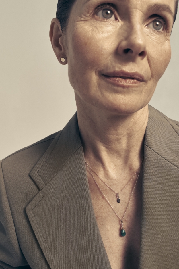 W kolekcji oprócz złota i srebra nie mogło też zabraknąć kamieni szlachetnych. Ręcznie oszlifowane turkusy i malachity o organicznych kształtach przywodzących na myśl kroplę wody zostały osadzone w oprawkach kolczyków i kolii. Z kamieni powstały też zawieszki, które staną się świetnym dodatkiem do ulubionego łańcuszka. Kolekcję uzupełniają nausznice i broszka z zawieszką z malachitu, będąca ukłonem w stronę przeszłości.