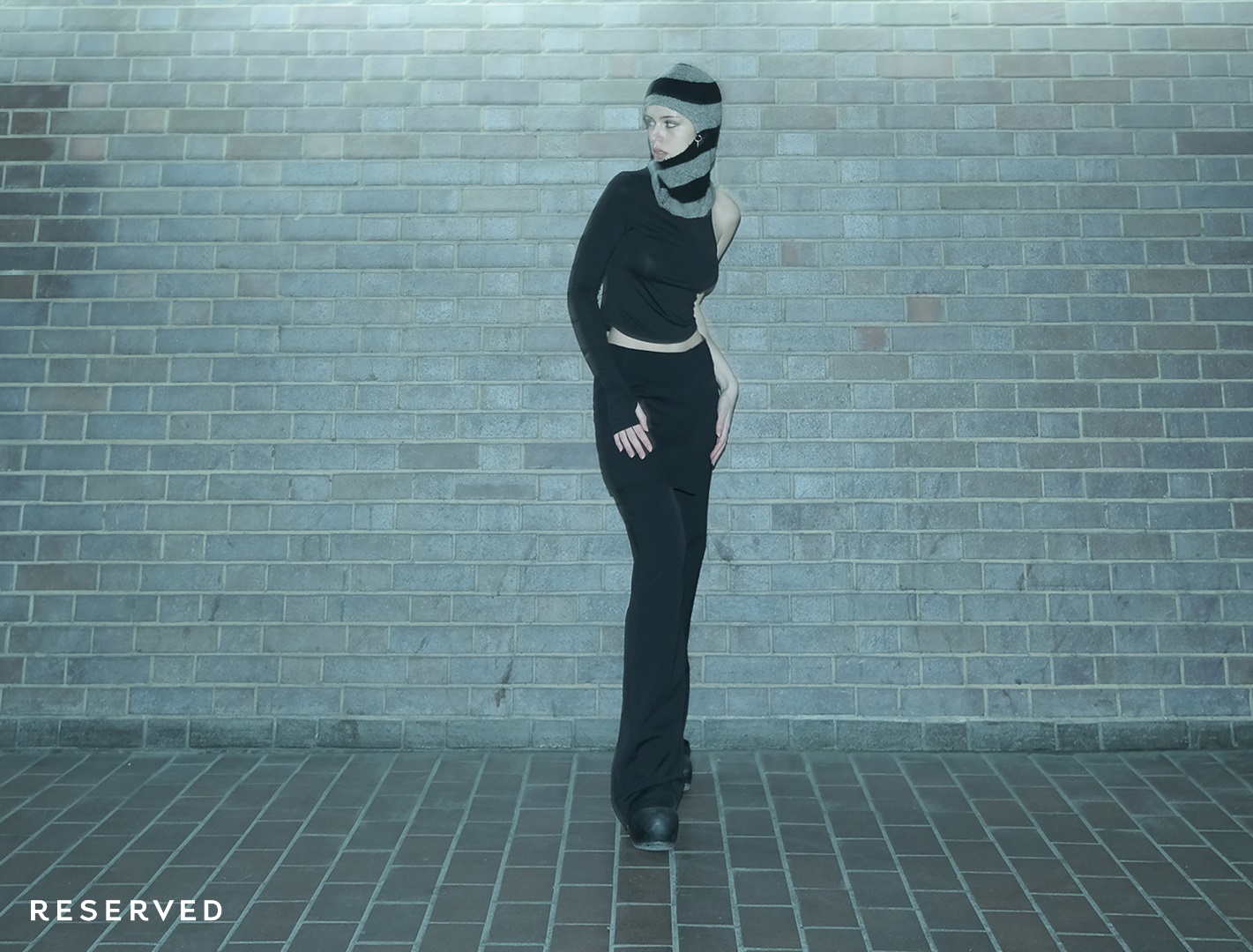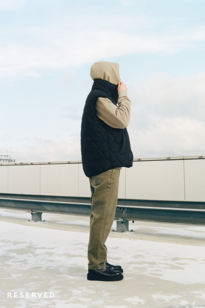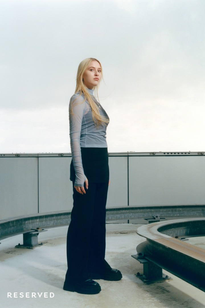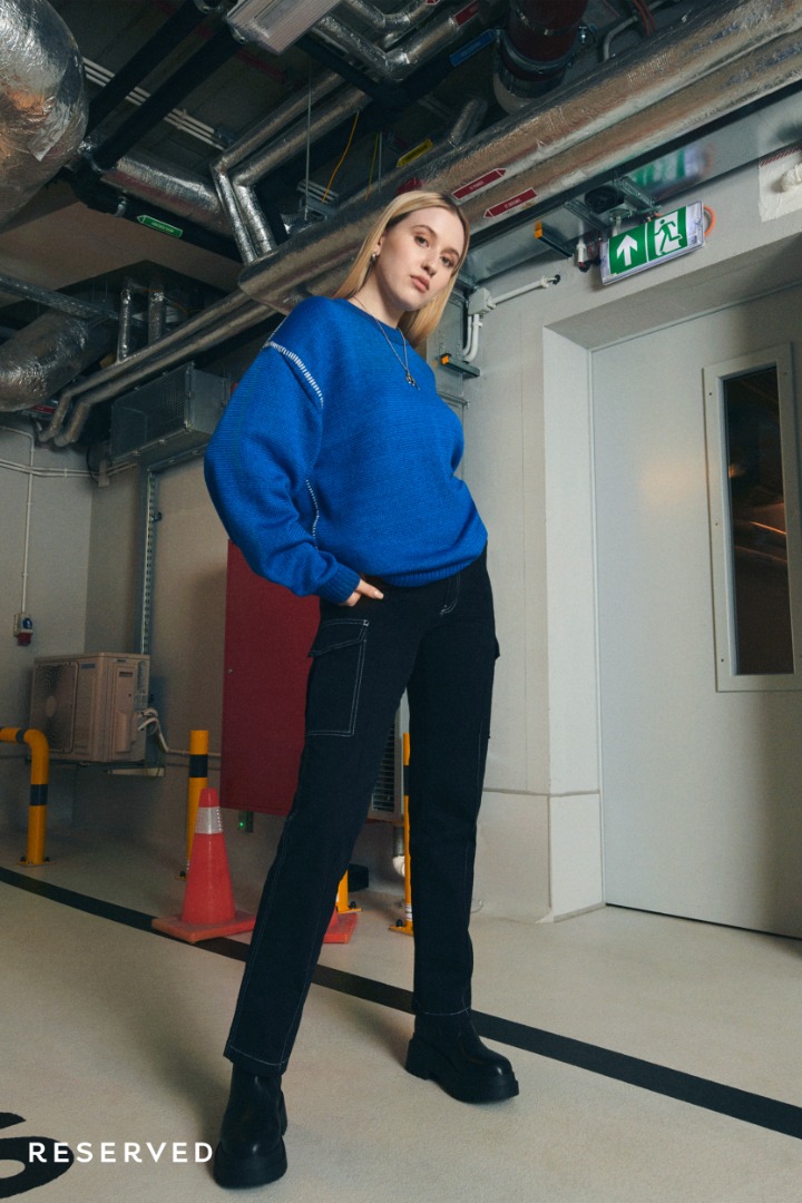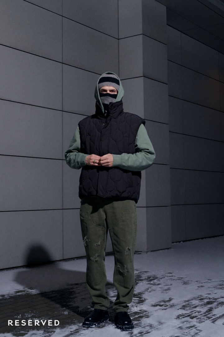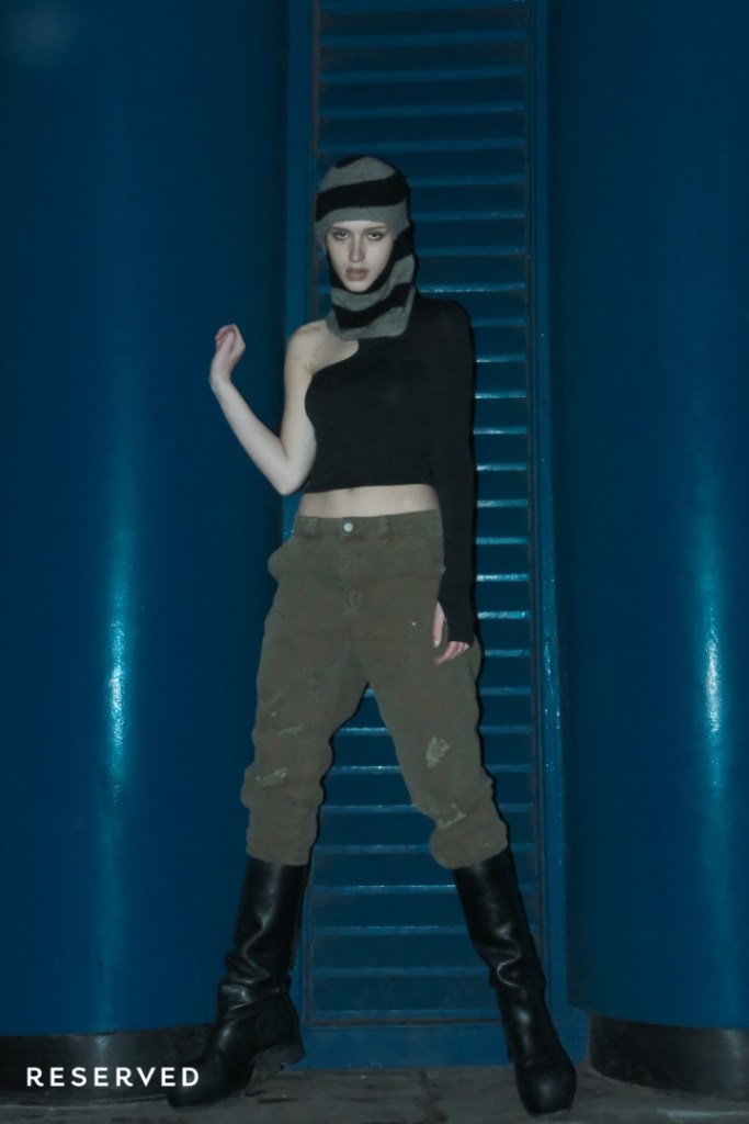 Przygaszona i stonowana kolorystyka oscyluje wokół kolorów militarnych, zgaszonych szarości, czerni i elektryzującego kobaltu. Minimalistyczne formy i kontrastowe przeszycia silnie nawiązują do końcówki lat 90. Mroczny i industrialny klimat kolekcji podbija dodatkowo surowość warszawskiej architektury w tle.