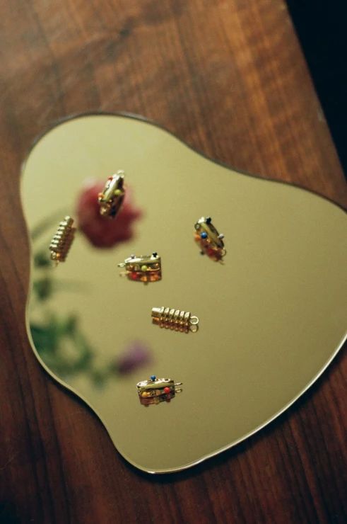 Kopiszka sięgnęła po wzory wazonów Nana i Oko, by stworzyć ich pomniejszone wersje z pozłacanego mosiądzu. Zawieszki zostały skonstruowane tak, by mogły być noszone zarówno na łańcuszku, ale też jako kolczyki.
