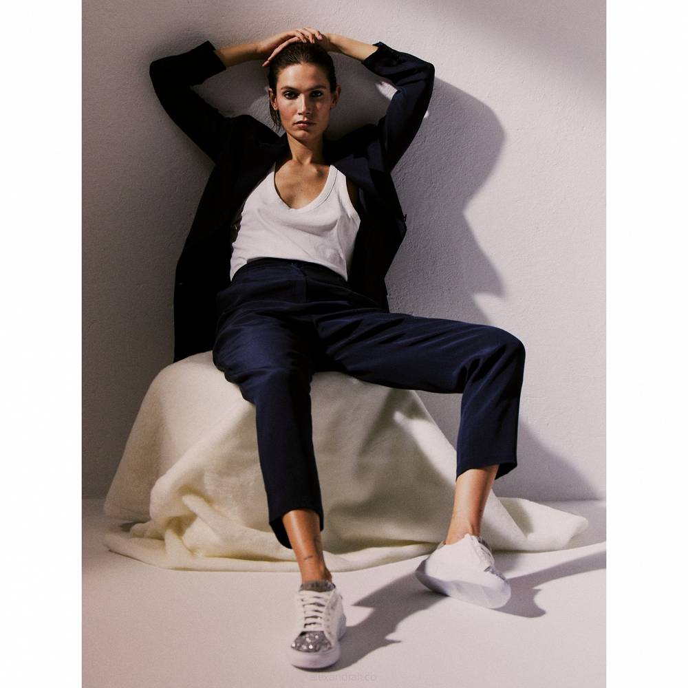 Projektantka nie ustaje również w staraniach o poszerzenie oferty obuwia. W nowej kolekcji pojawiły się zarówno nowe wersje kolorystyczne sneakersów Bliss, jak również nowe modele sportowych butów – tym razem na grubszej platformie i o bardziej oldschoolowym designie. Jednak prawdziwym hitem są kowbojki wykonane z czarnego tworzywa wykonanego z pulpy kukurydzianej, wyglądem i właściwościami imitującego naturalną skórę. By je zdobyć, trzeba zapisać się na listę oczekujących!