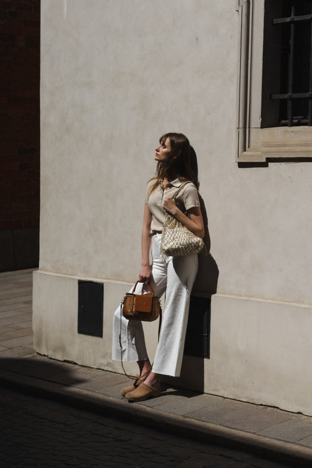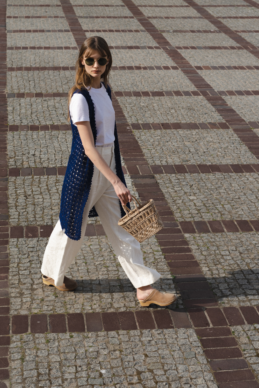W letniej kolekcji nie zabrakło ręcznie dzierganych swetrów. Ażurowe kardigany, długie kamizelki i obszerne swetry to idealne propozycje na letnie wieczory. Wykonane z delikatnej włóczki – bawełny lub alpaki z domieszką jedwabiu, przy odpowiedniej pielęgnacji będą cieszyć przez długie lata. Uzupełnieniem kolekcji są drewniane chodaki – lansowane przez takie domy mody jak Isabel Marant, Chloe czy Chanel. Wykonywane ręcznie z drewna i naturalnej skóry, są dzięki temu wyjątkowe i unikatowe.