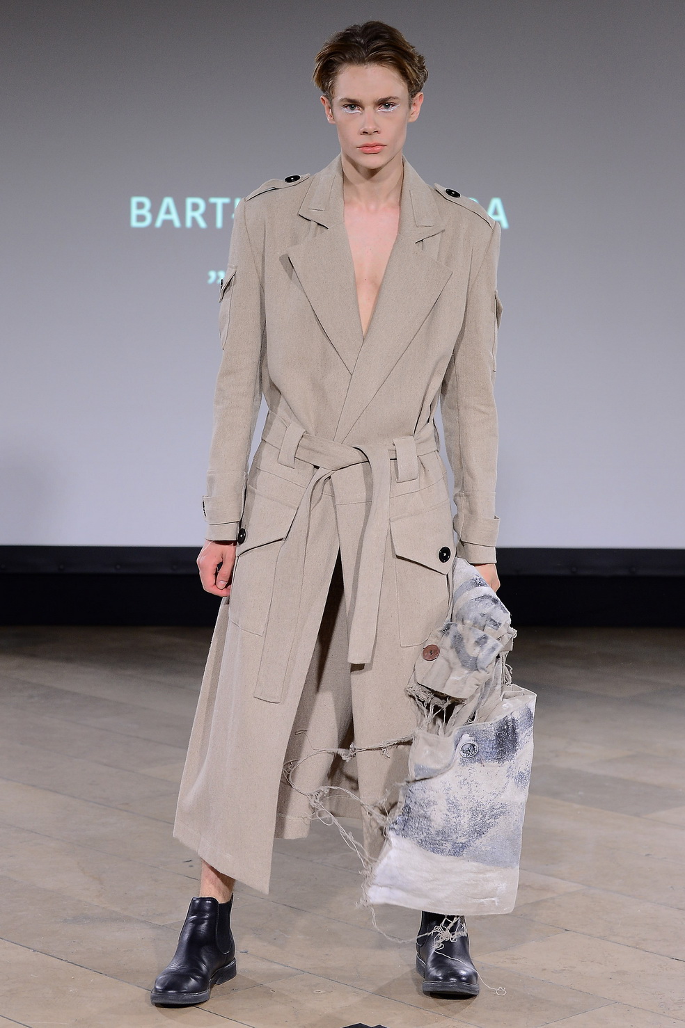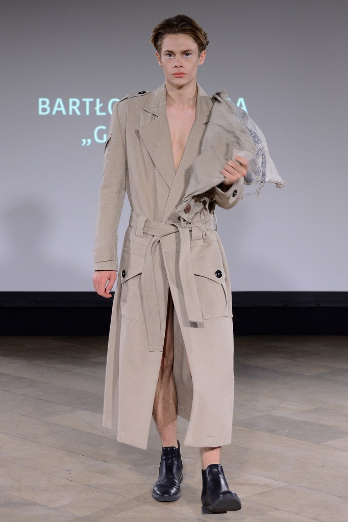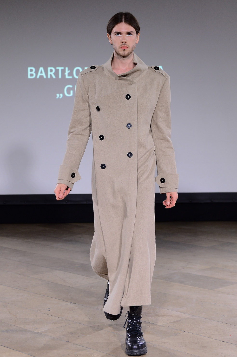 Militarny charakter sylwetek został wykorzystany jako tło do wyrażenia pacyfistycznych poglądów autora kolekcji. Klasyczny płaszcz został poddany dekonstrukcji, a jego fragmenty ozdobione nadrukami zaczerpniętymi ze sztuki ulicznej.