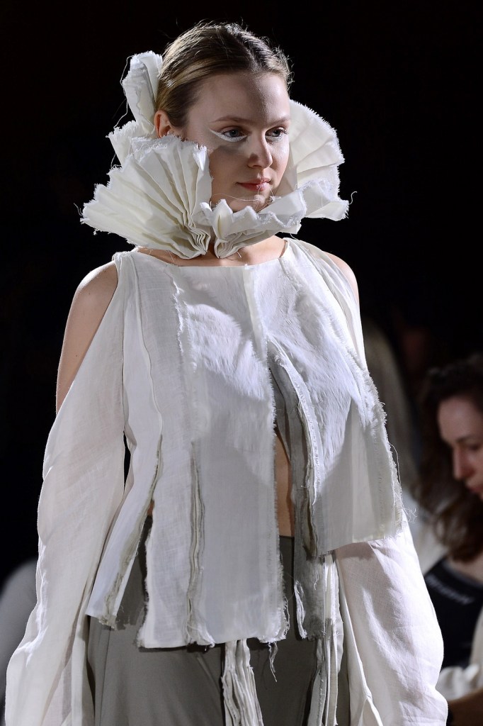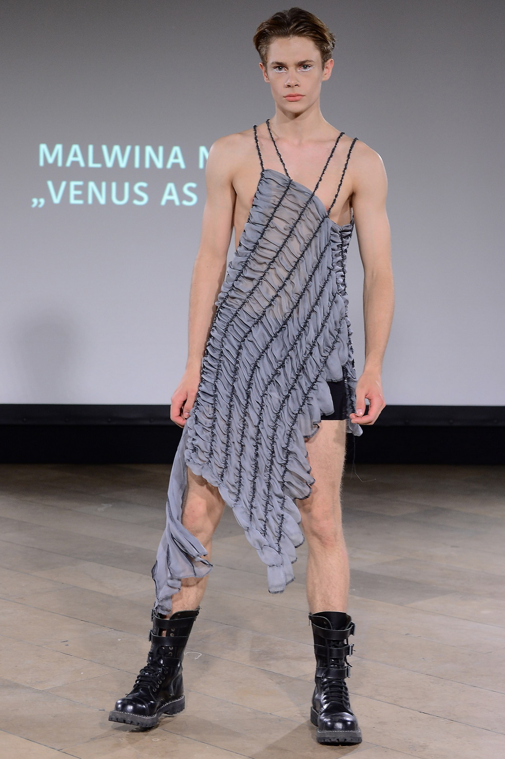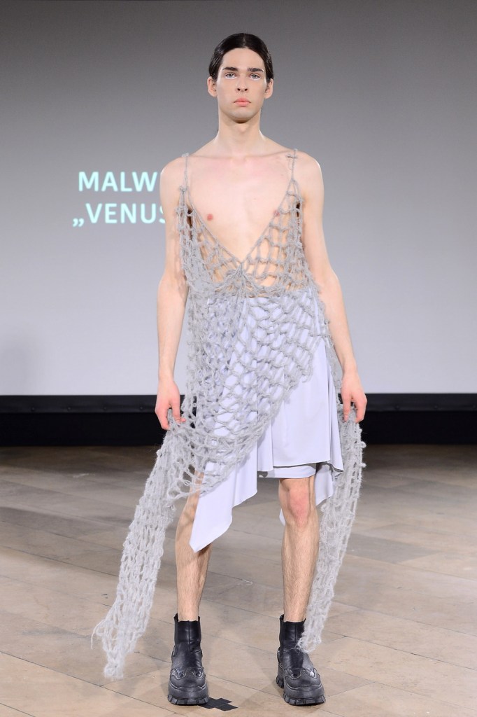 Manifest poglądów autorki w kwestii płynności płciowej wyrażony poprzez eteryczne ażurowe dzianiny i formy wymykające się tradycyjnej klasyfikacji płci. Jak śpiewała kiedyś Bjork, „He believes in a beauty; He’s Venus as a boy”.