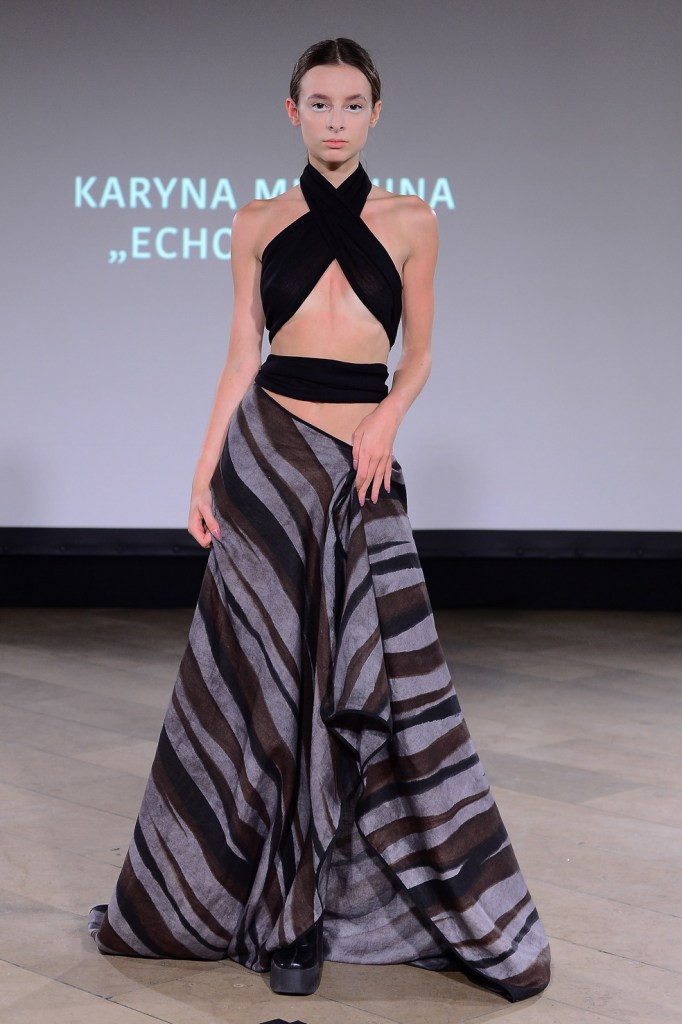 Fascynacja kulturą i naturą kontynentu afrykańskiego została zaprezentowana w postaci sylwetek, których wzory, struktury i barwienia zostały wykonane własnoręcznie. Autorka zwraca uwagę na znaczenie wzajemnego przenikania się kultur w kontekście poprawnego kierunku wpływu globalizacji na przemysł modowy.