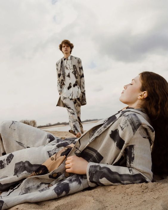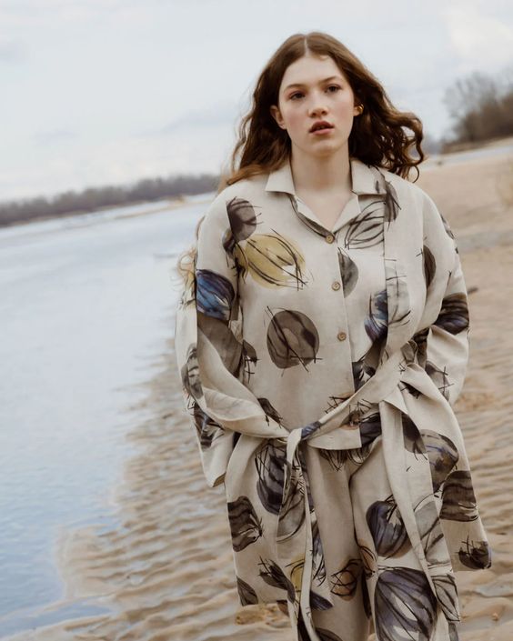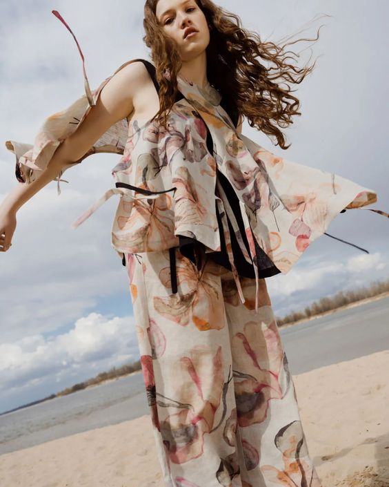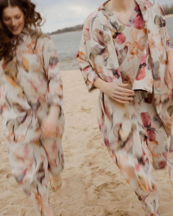 Wygodne kimona, koszule i szerokie spodnie, bluzki z troczkami po bokach oraz swobodne sukienki – to elementy budujące letnią kolekcję marki SNY. Nie ma tu jednak nudy i powtarzalności – każdy model wykonany jest z lnianej tkaniny drukowanej w wyjątkowy, autorski wzór. Abstrakcyjne bazgroły wyglądające jak niedbałe pociągnięcia pędzlem, chlapnięcia farbą czy pąki kwiatów powstały na bazie analogowych grafik malowanych akwarelami. Ich stonowana, ciepła kolorystyka nawiązuje do bliskości z naturą. Nic nie krzyczy, nie kontrastuje, co daje poczucie harmonii i równowagi.