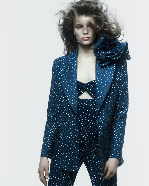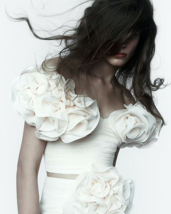 Trójwymiarowe aplikacje w kształcie kwiatów zaczerpnięte – a jakże – z lat 80. i projektów Yvesa Saint Laurenta, to już motyw kojarzący się z projektantką, do którego ta chętnie sięga w niemal każdej kolekcji. W tym sezonie pojawiają się one na sukienkach, spódnicach mini, drapowanych topach oraz sandałkach na obcasie, podkreślając ich kobiecy charakter.
