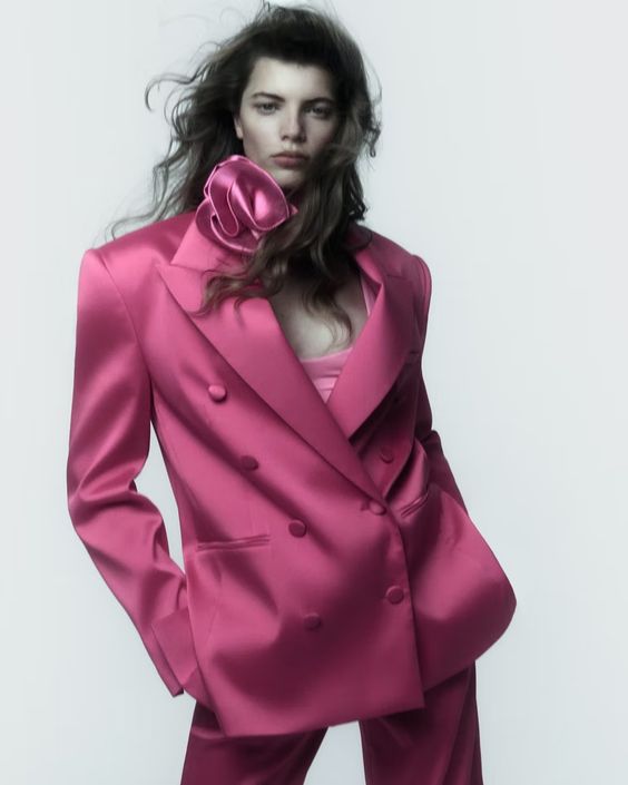 Projektantka wplata w sylwetki detale, które przywodzą na myśl estetykę y2k. Są to między innymi duże okulary przeciwsłoneczne, biżuteria z kryształków i takież same zdobienia pojawiające się na przykład na torebkach w rozmiarze mikro, spodnie rurki czy wreszcie intensywny róż, niezwykle popularny 20 lat temu, obecnie powracający za sprawą nurtu barbiecore.