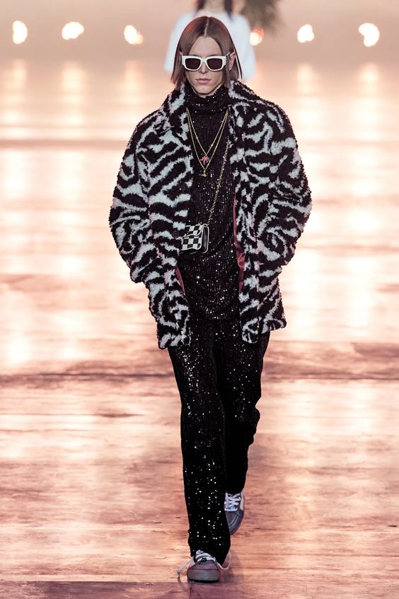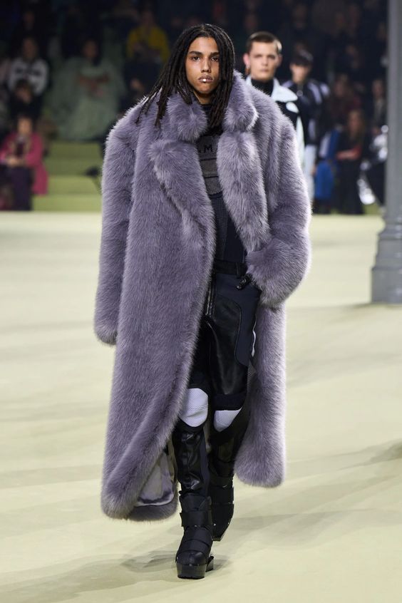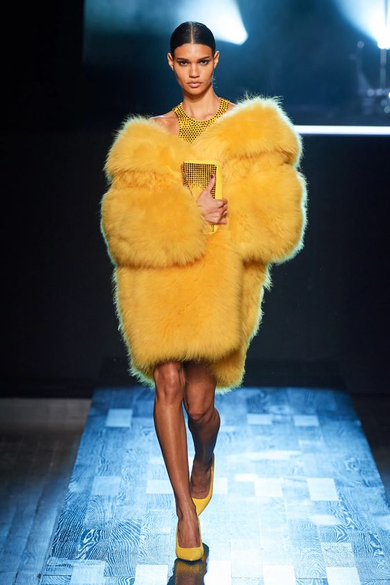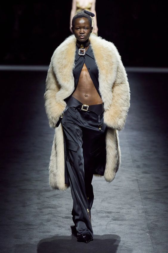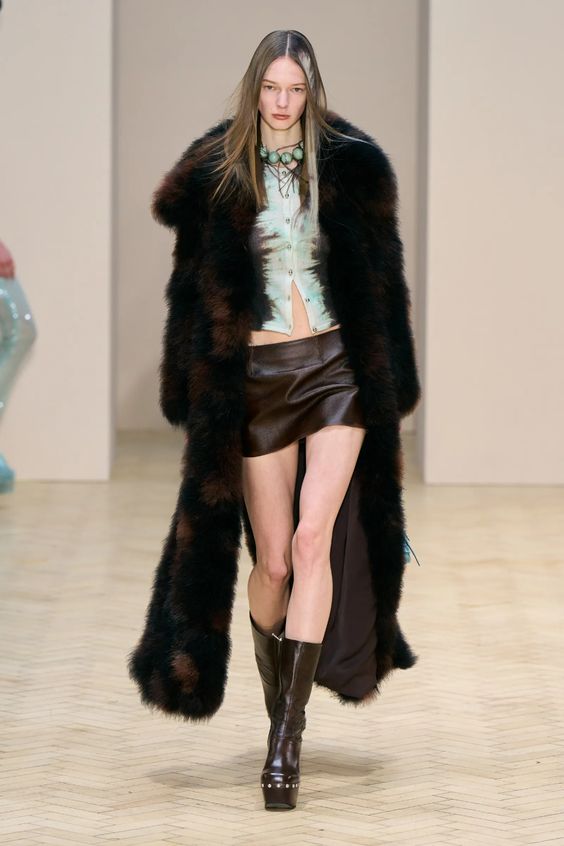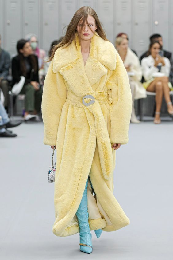 Znów powracamy do nurtu y2k i estetyki gwiazd z przełomu lat 90. i 00. Wówczas do spodni z niskim stanem, masywnej ostentacyjnej biżuterii oraz widocznej bielizny, dla większego efektu zakładano wielkie futrzane płaszcze. Styl ten był bardzo popularny zwłaszcza w kręgach hip hopowych – nosili go między innymi 50 Cent, Snoop Dogg czy Puff Daddy. Dziś skłaniamy się ku bardziej eleganckiej wersji futra i wybieramy jego etyczne odpowiedniki.