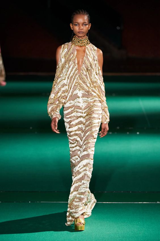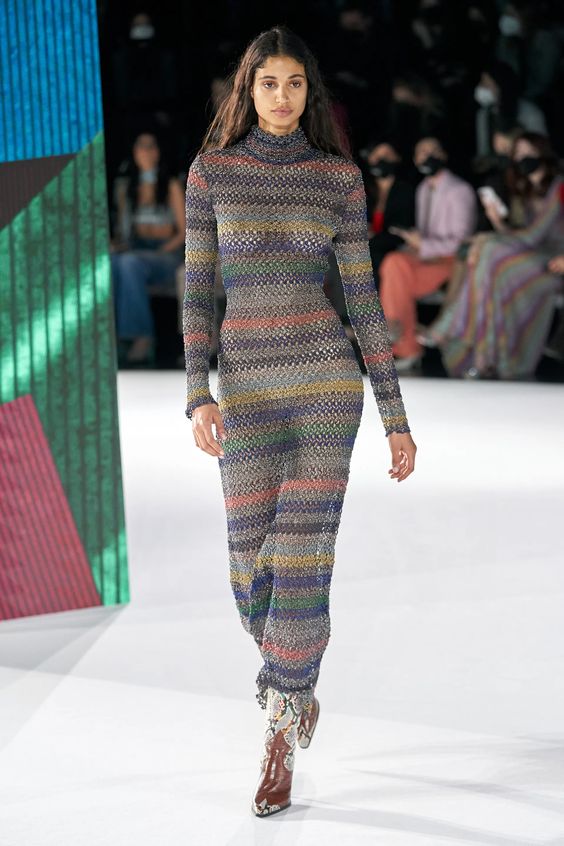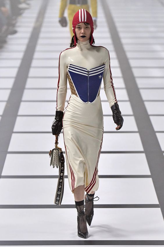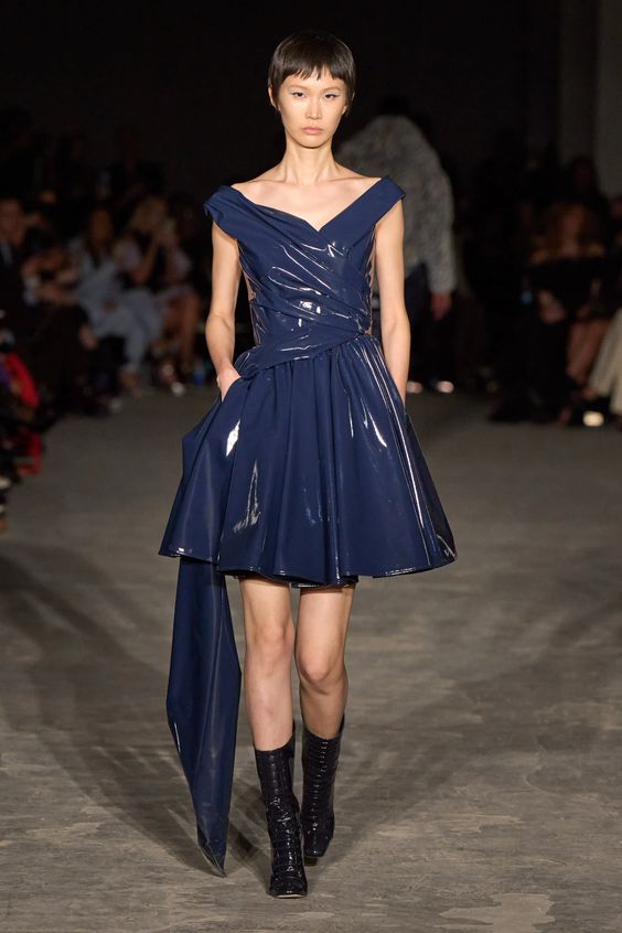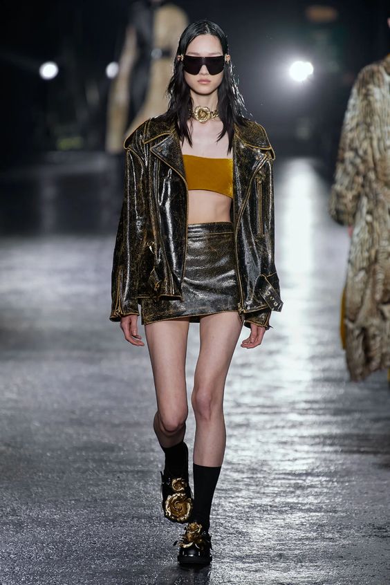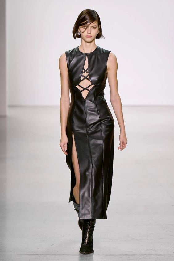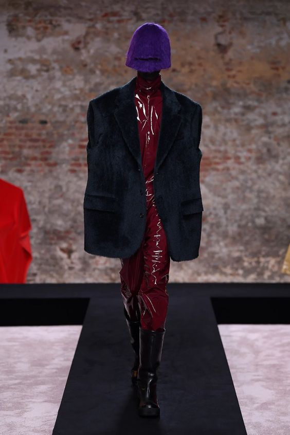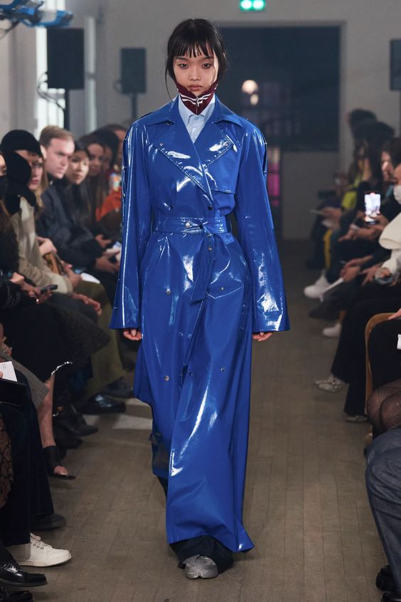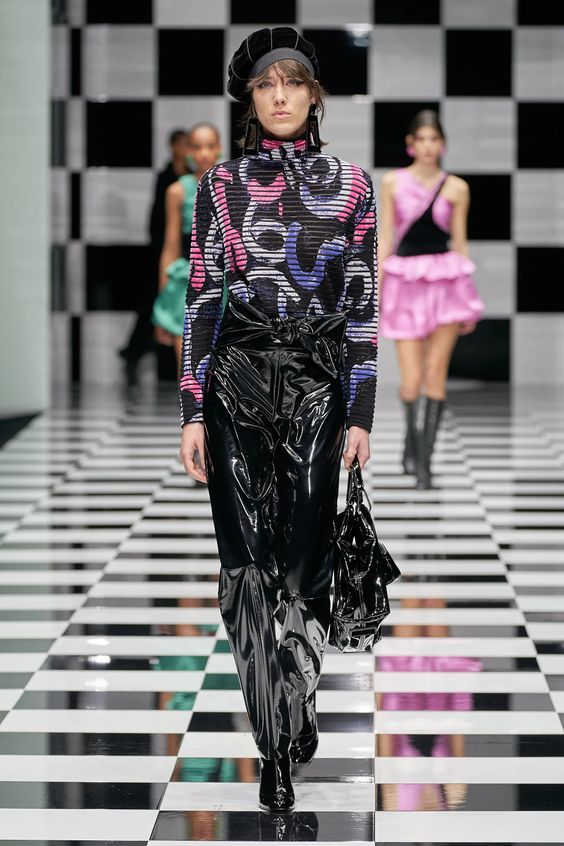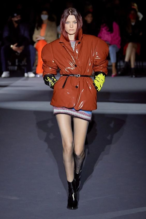 Nieśmiało zaproponowany przez Balmain i Saint Laurent w 2020 roku, wówczas nie przyjął się, pomimo wielokrotnych prób jego spopularyzowania przez Kim Kardashian. W tym sezonie ubrania z lateksu lub materiałów go przypominających powraca z większym impetem. Lakierowane legginsy lub topy możemy nosić „bezpiecznie” jako warstwę lub iść na całość i wybrać lateksową sukienkę czy płaszcz w mocnym kolorze.